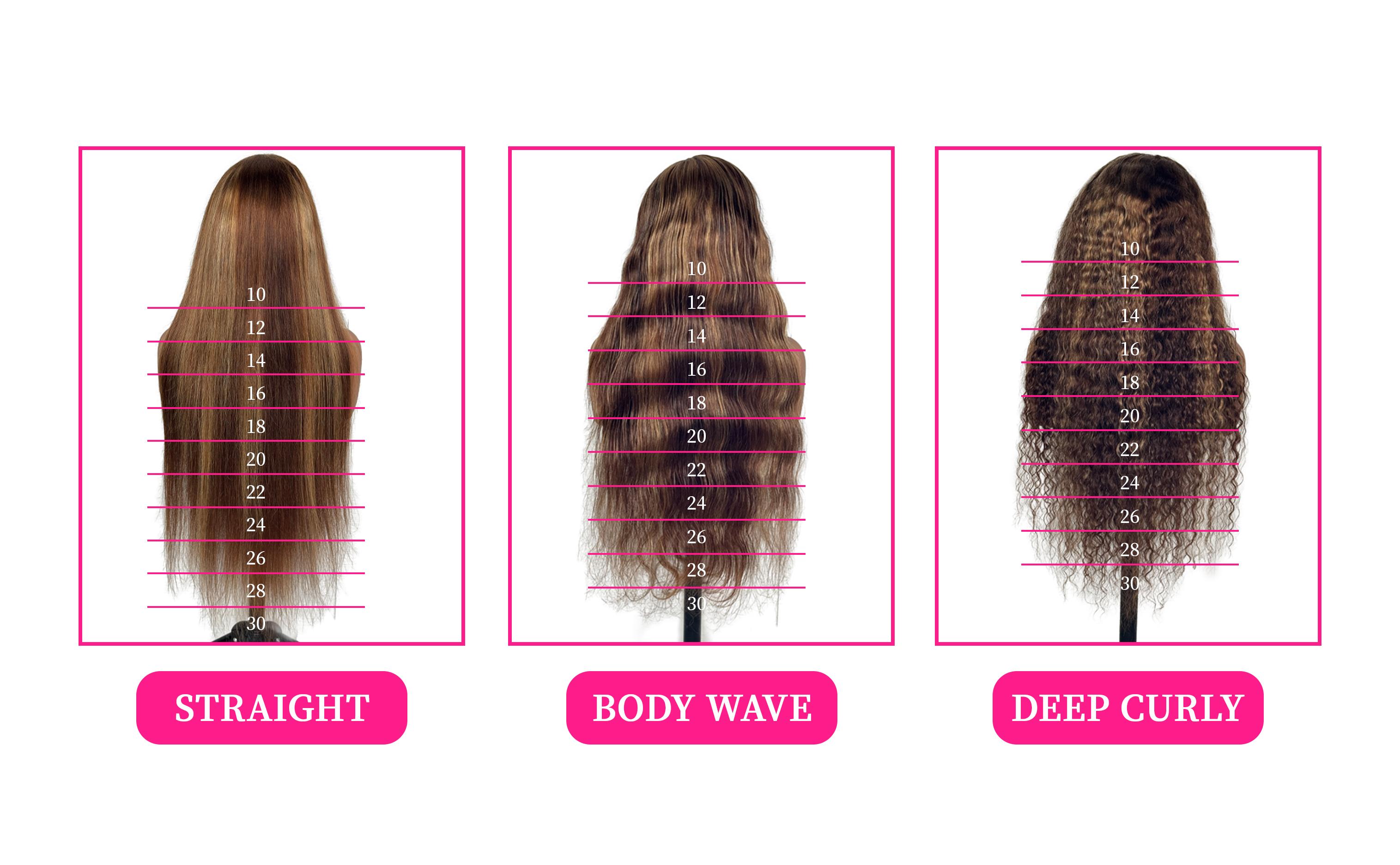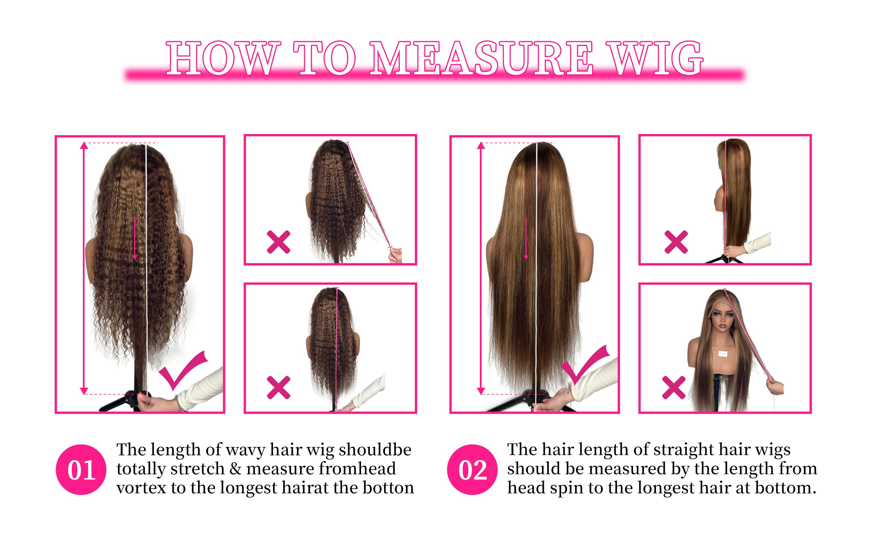 1,Wig hair length, should be measured from the top of the hair to the bottom of the longest hair straightening, and conventional manual measurement please allow 1-3cm error, thank you!
