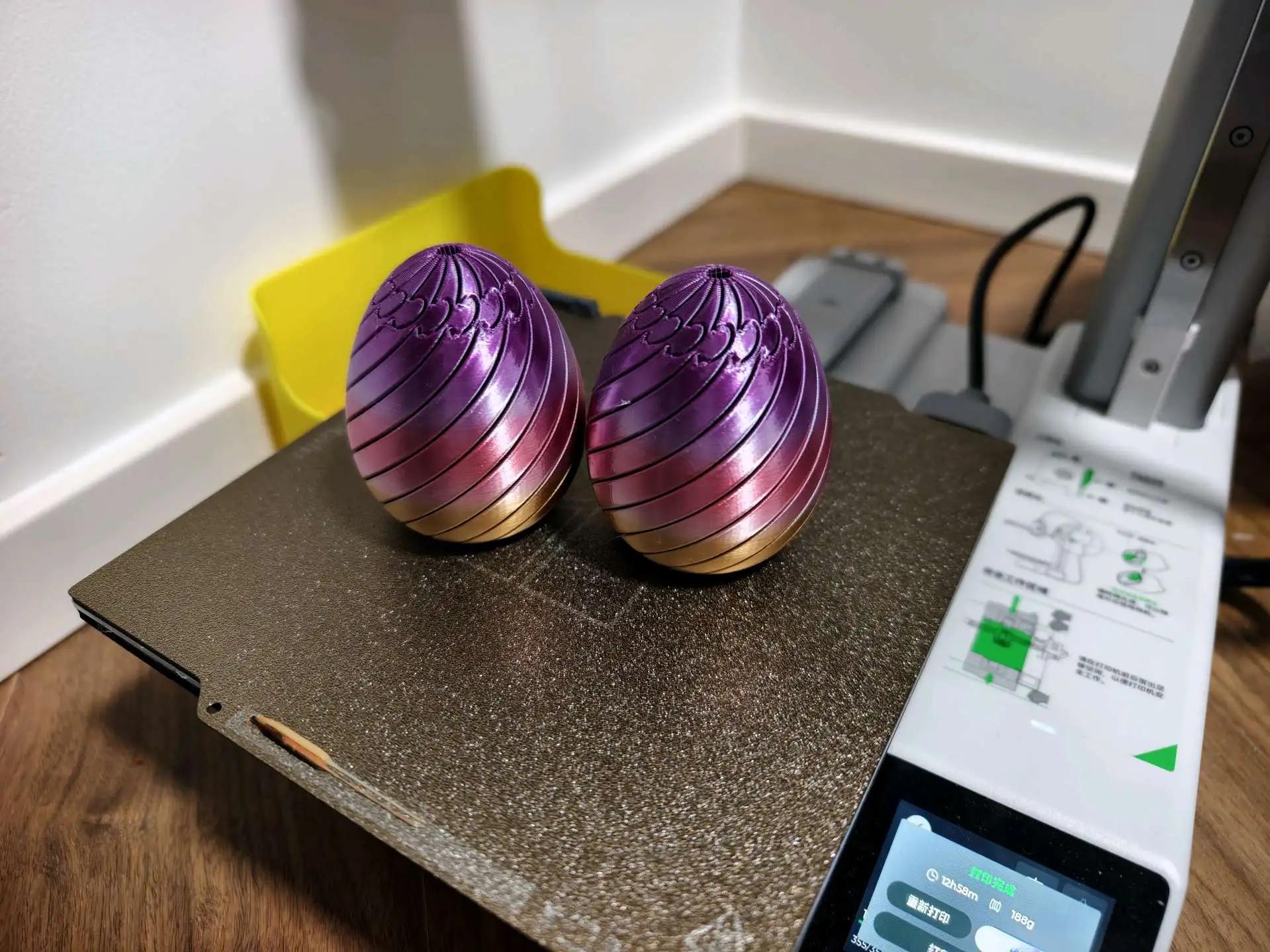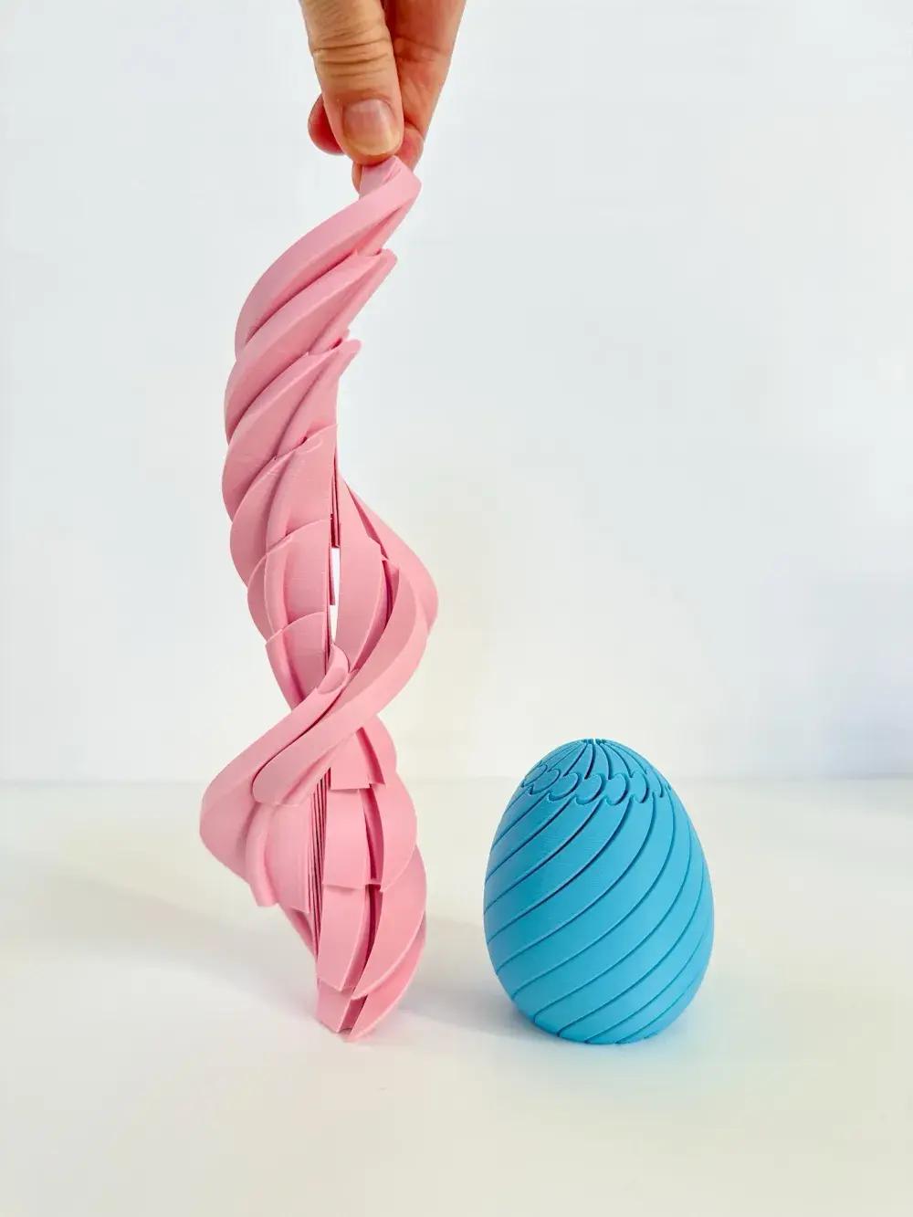 The 3D Printed Twisty Fidget Egg is a unique Easter Egg design. It serves as a fluid flow stress relief desktop ornament. Perfect for both home and office use, this egg adds a touch of fun and relaxation to your space. 🐣