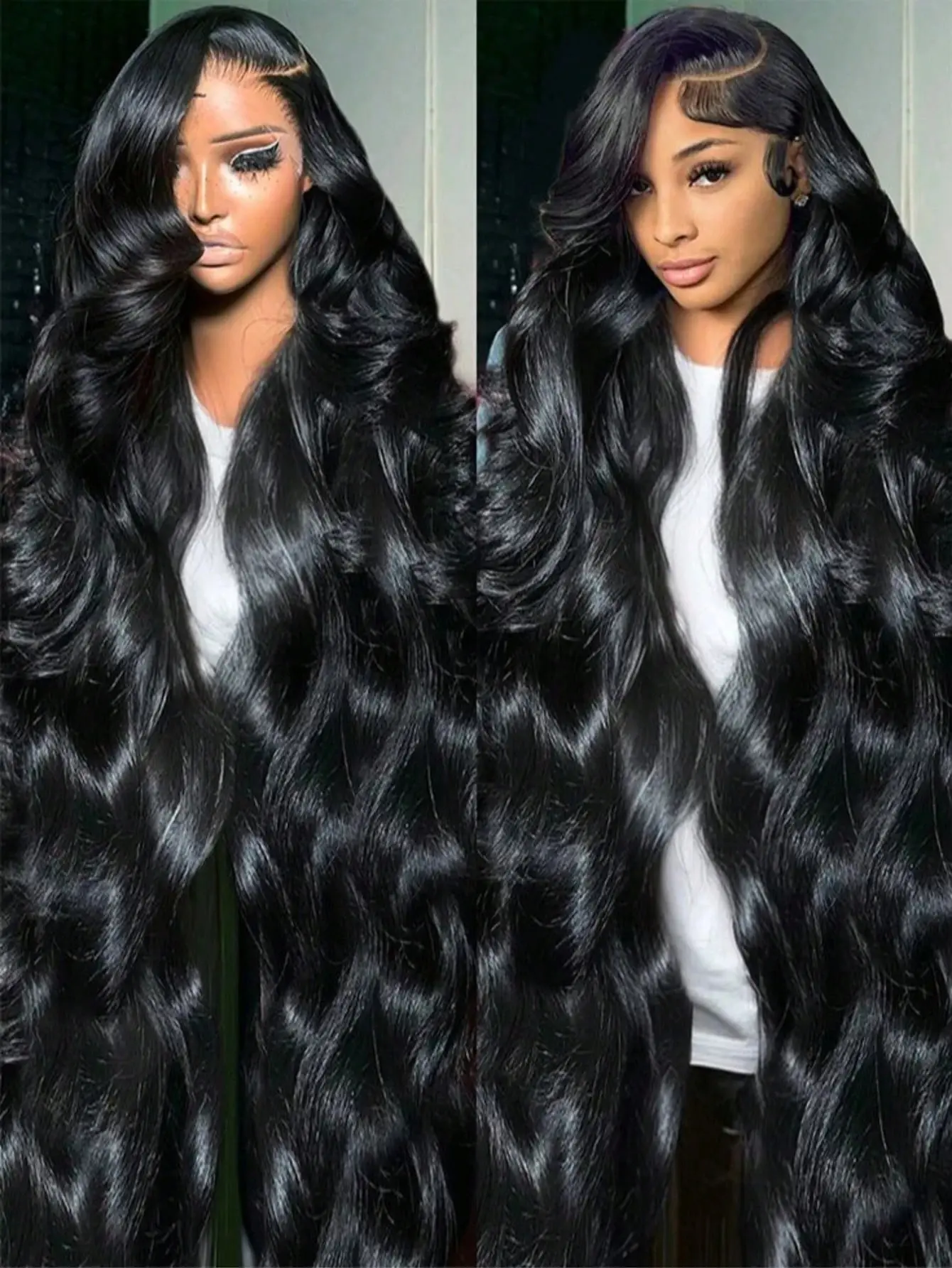 40″ body wave 13×4 lace front wig. 100% human hair, 180% density, pre-plucked HD lace for dramatic, red-carpet-ready length with natural movement.