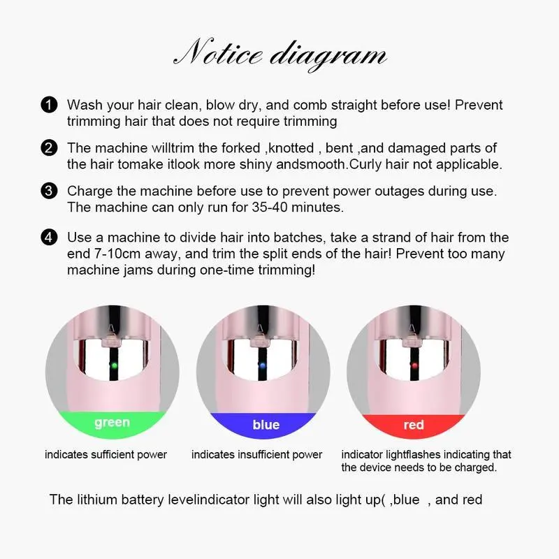 How to Use: Glide through small sections of dry, straight hair. The device automatically detects and trims damaged ends. Use every 4-6 weeks for healthiest results.
