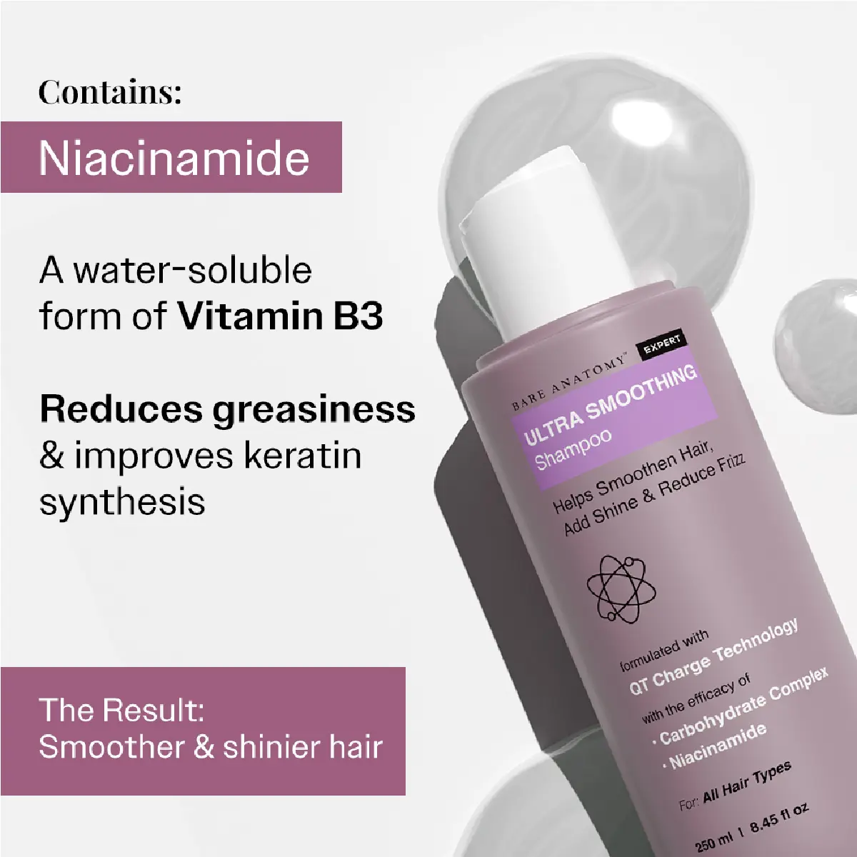 Experience salon-quality hair care on the go with Bare Anatomy Ultra Smoothing Shampoo & Hair Mask Trio. Powered by QT Charge Technology, this smoothing duo improves hair smoothness, making it ideal for taming dryness, roughness & frizz by deeply moisturizing hair from root to tip. Enriched with Niacinamide and Carbohydrate Complex, it nourishes, hydrates, strengthens, and enhances shine.