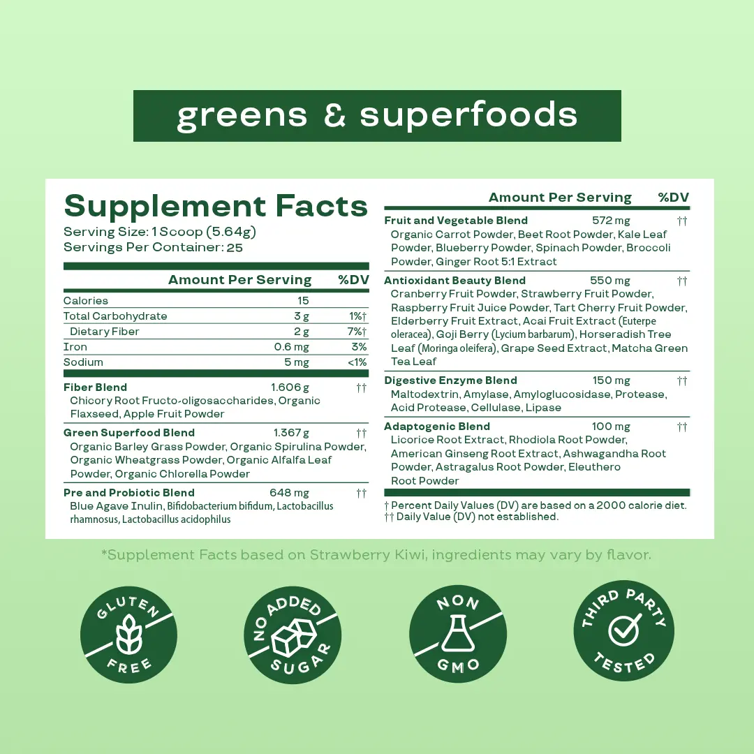 • Daily Greens Routine: Greens taste amazing, making it easy to stay consistent and feel your best. Add it to a smoothie, mix it into juice or water, or put it in your favorite recipes for an instant upgrade to your daily wellness routine.