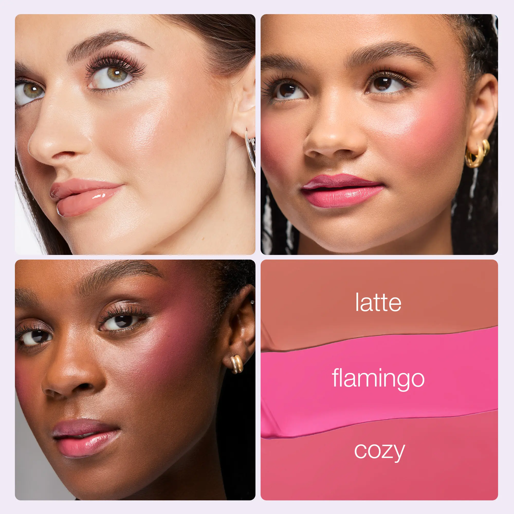 delivers a juicy flush for lips & cheeks with swipe & go color