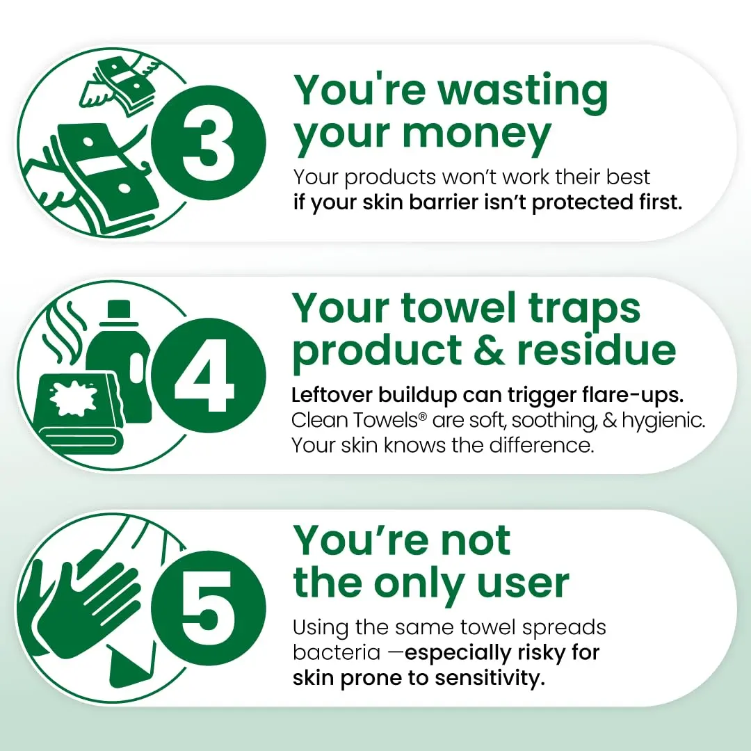 • Ultra-soft disposable towels: Designed for sensitive and reactive skin.
