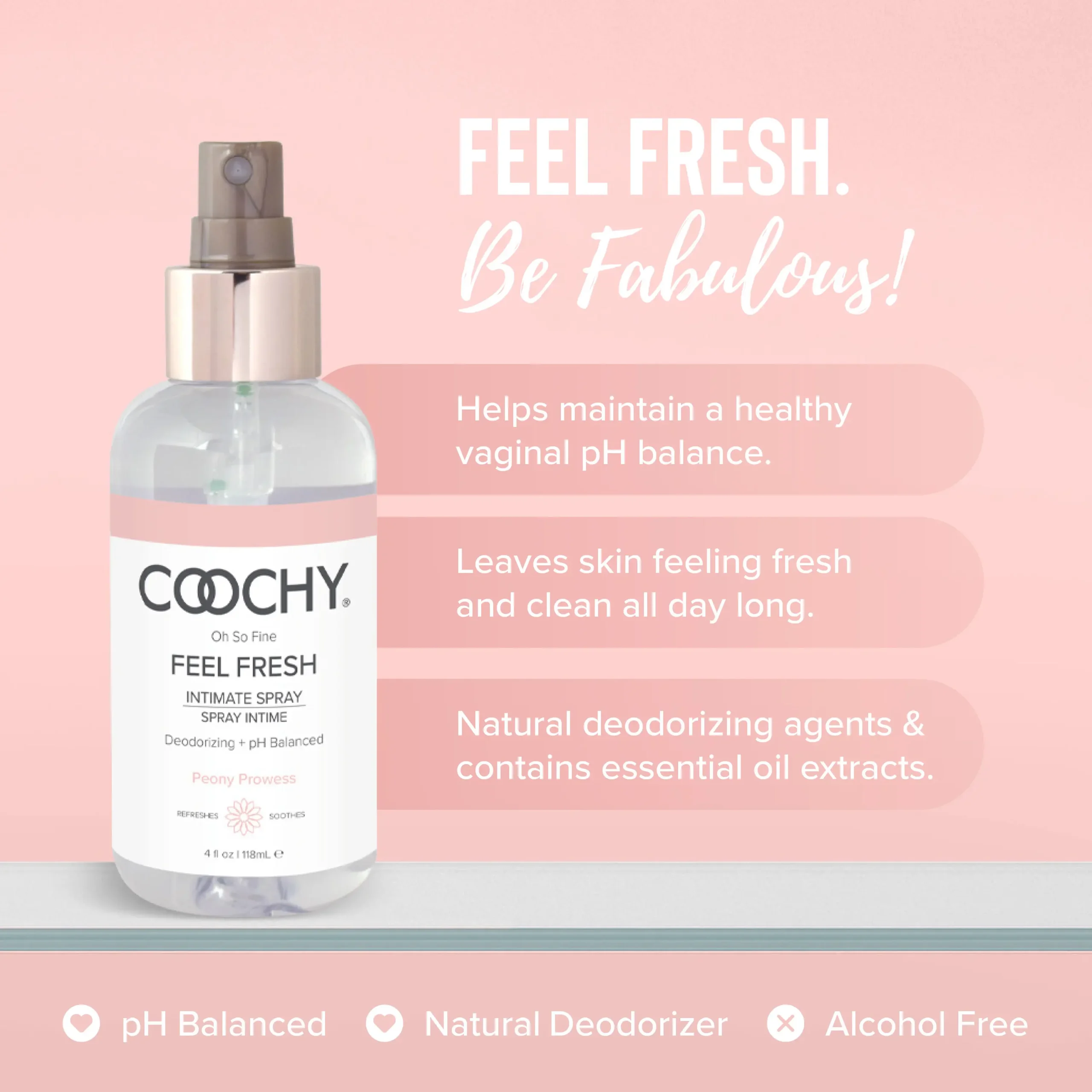 COOCHY Feel Fresh Intimate Feminine Spray | Infused with Natural Deodorizing Agents & Essential Oils 4.9 oz
