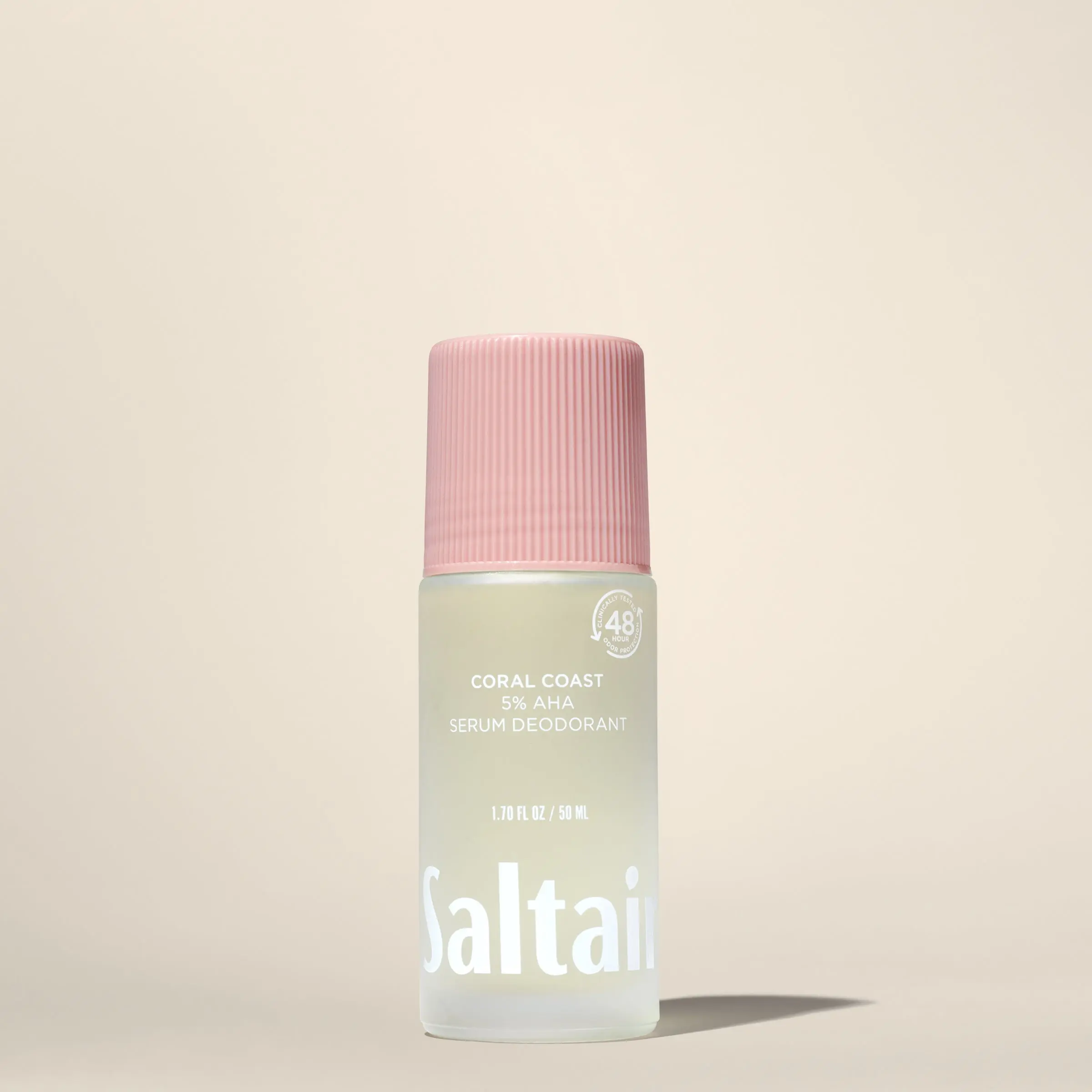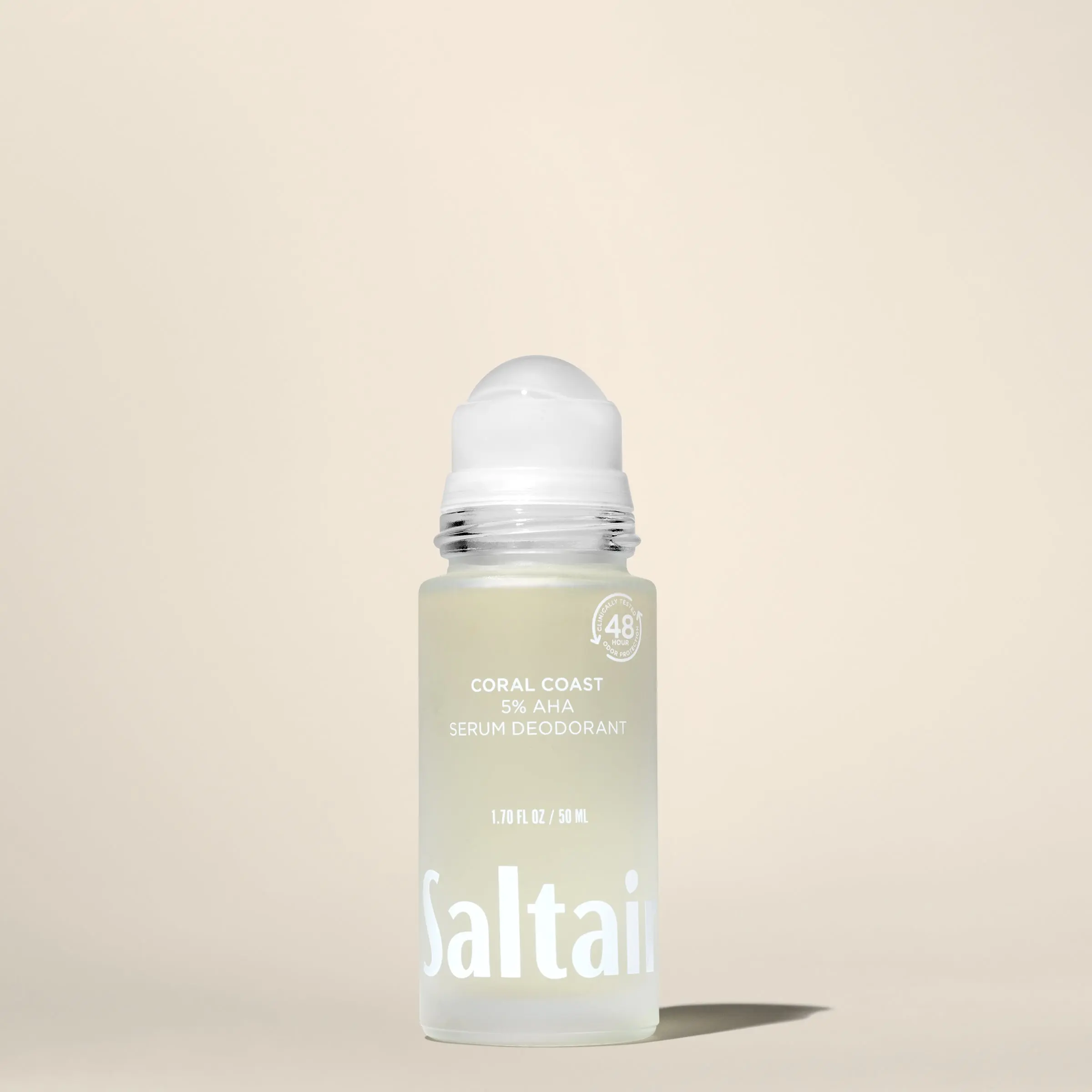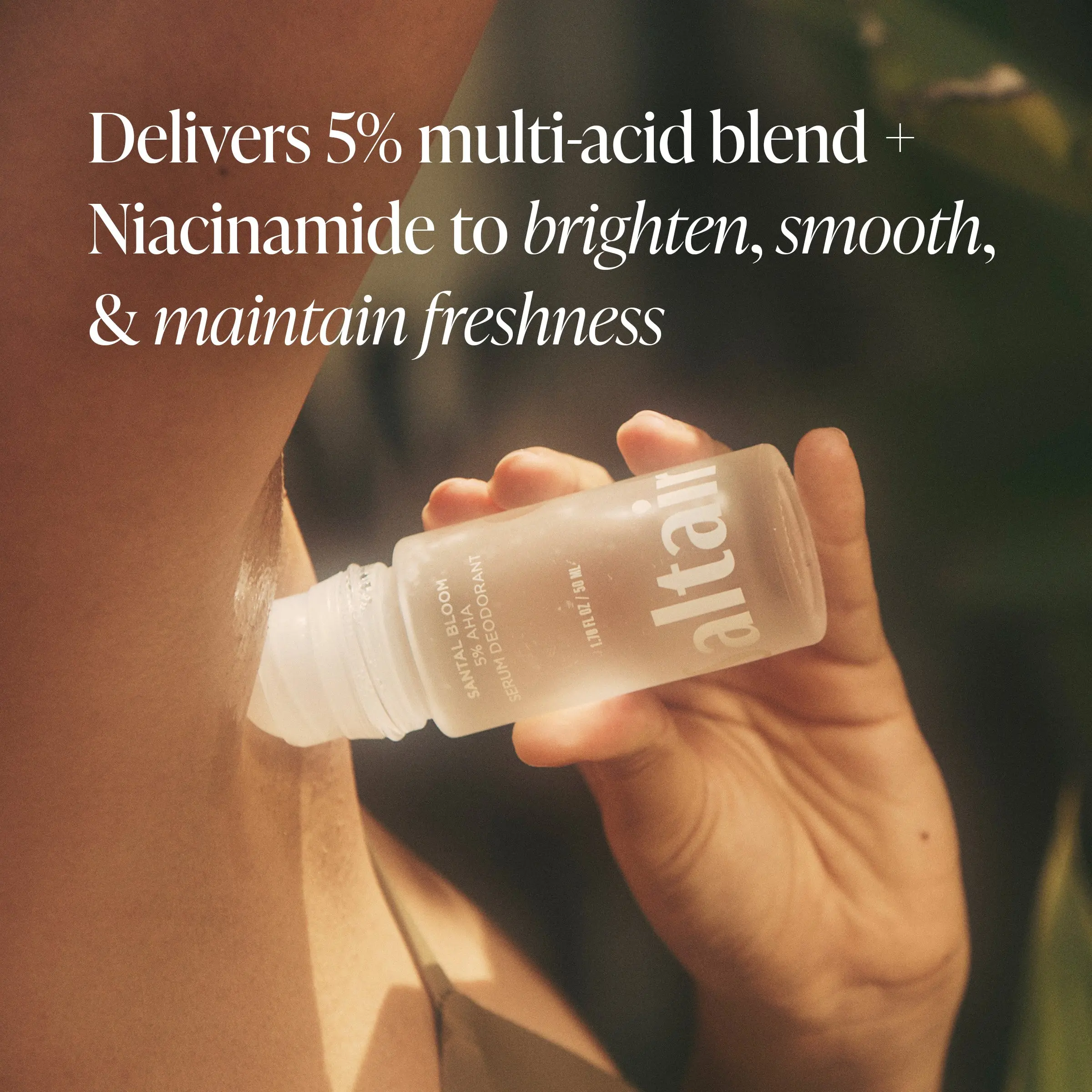 Our serum deodorant is formulated with a multi-acid blend of mandelic, lactic and polyhydroxy that acidifies the skin to combat odor, brighten the look of discoloration, and smooth and reduce the look of ingrowns. Clinically proven to combat odor for 48 hours.