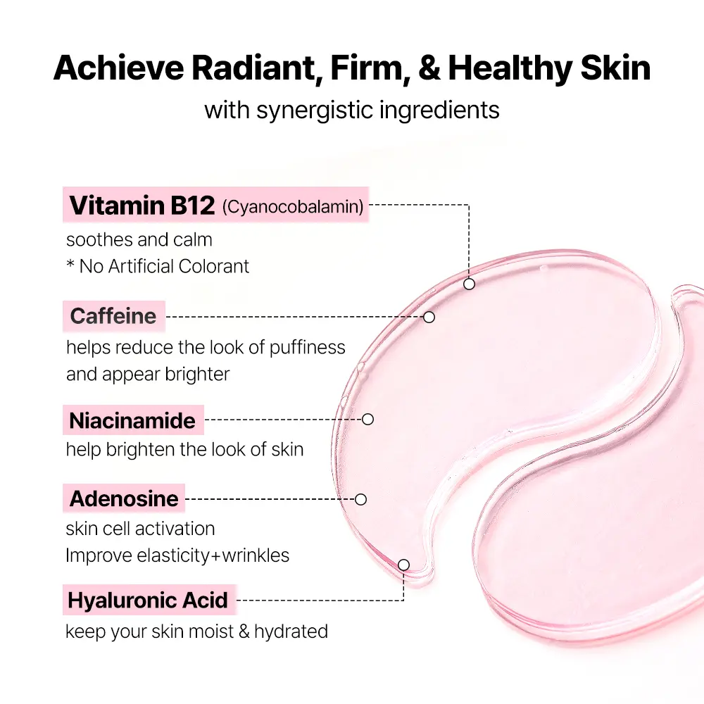 The Peptide Collagen Eye Patches, enriched with 4 powerful peptides and collagen, work to reduce puffiness, hydrate, and revitalize your under-eye area, leaving your skin looking refreshed and radiant.