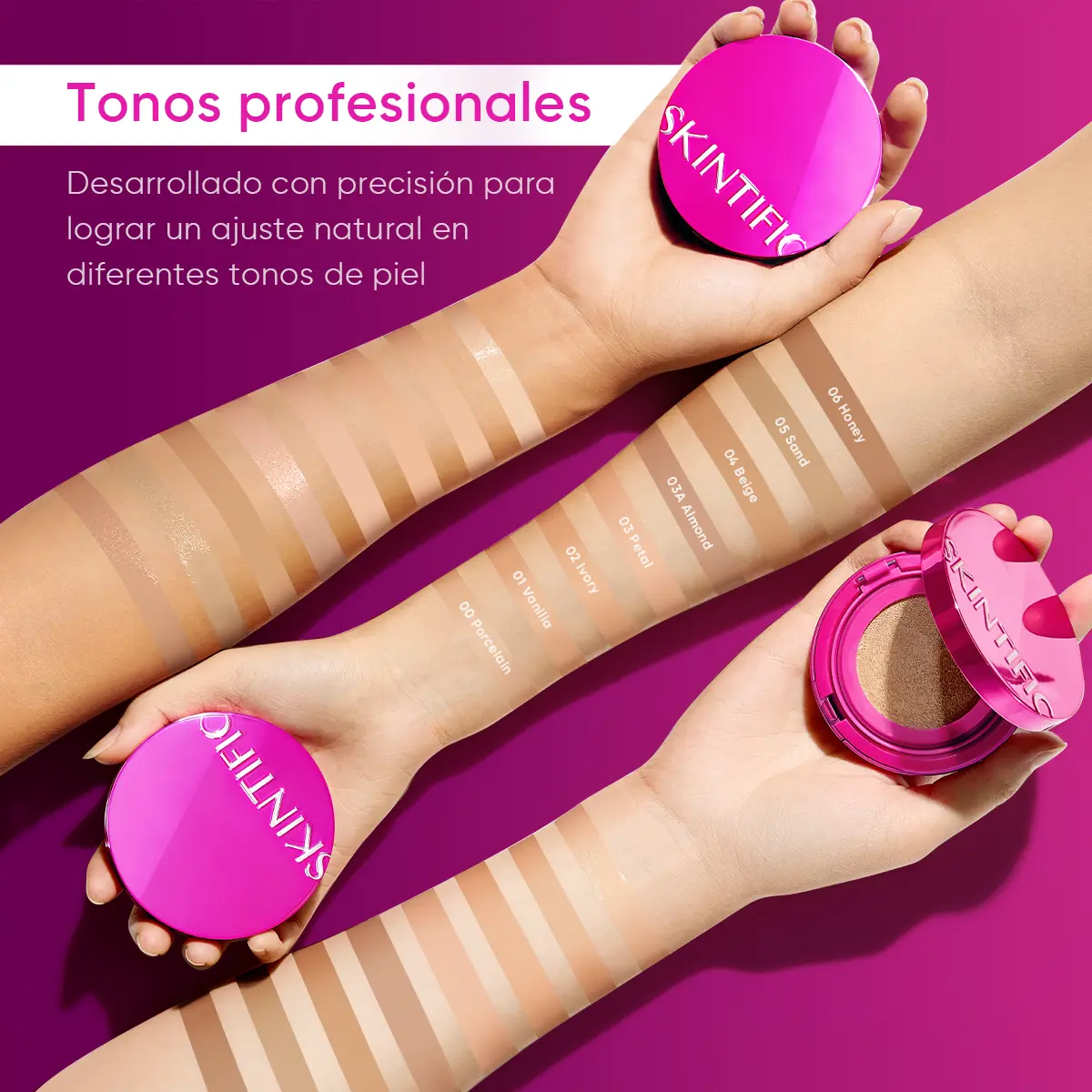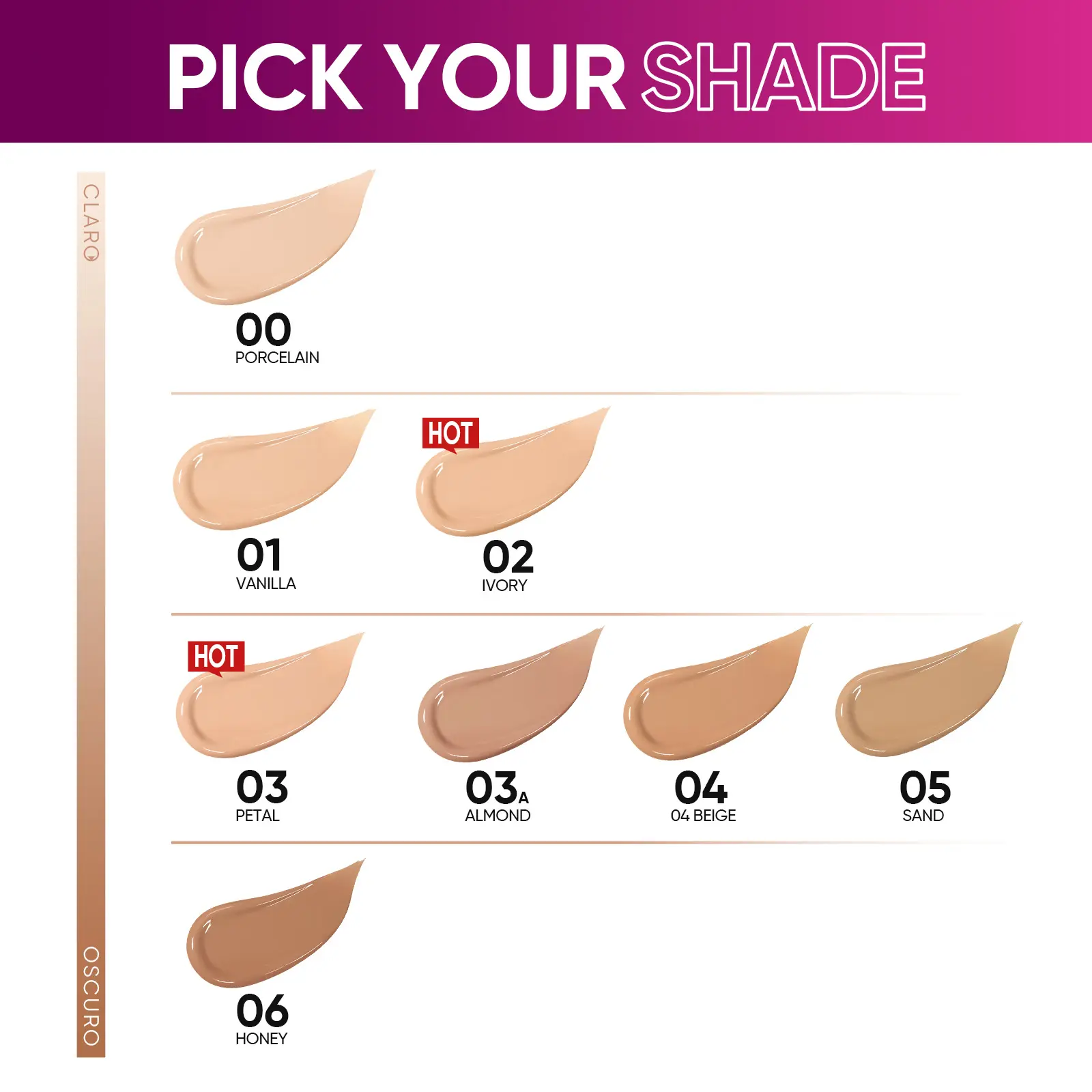 - Available Shades: 8 shades for all skin tones: Porcelain, Vanilla, Ivory, Petal, Almond, Beige, Sand, Honey.