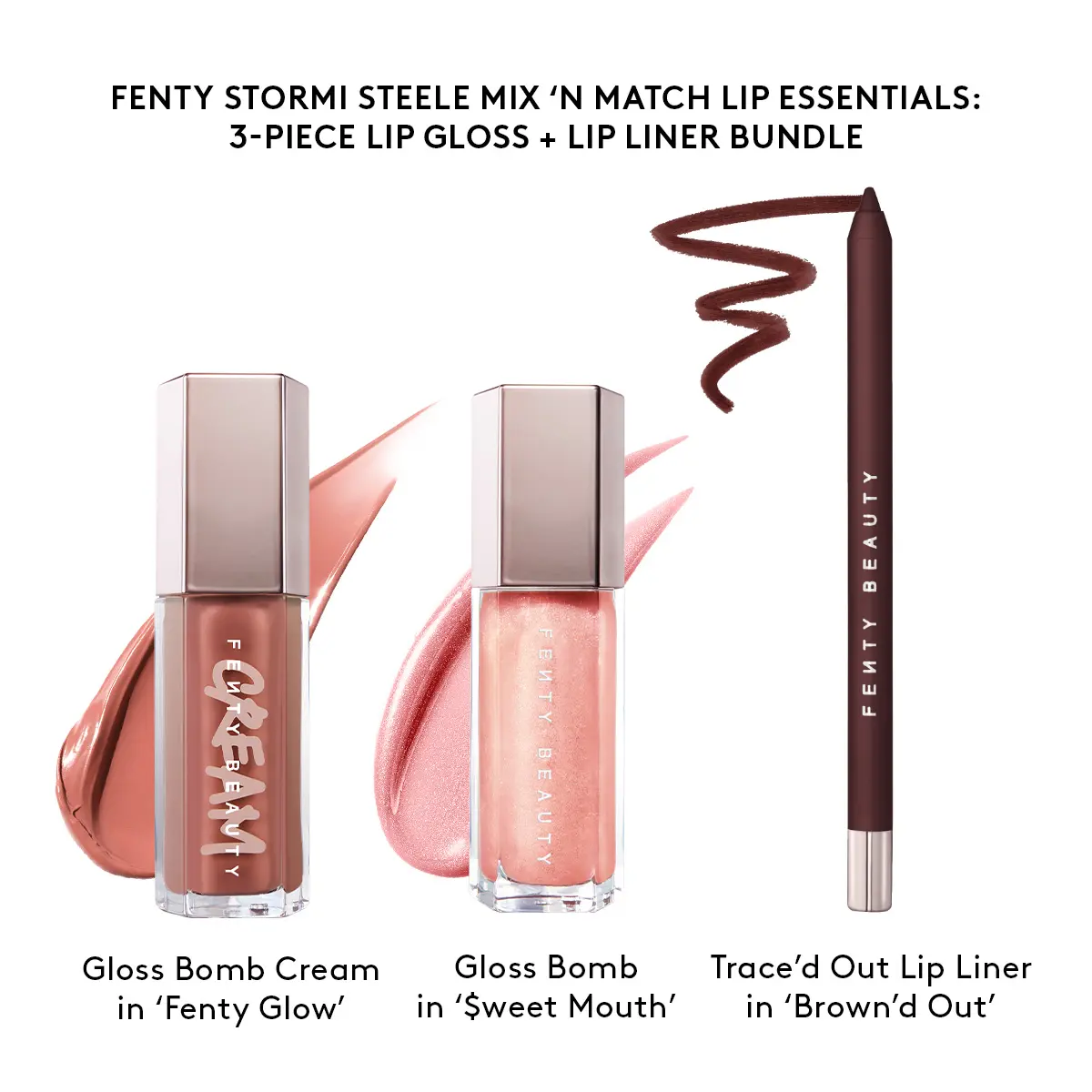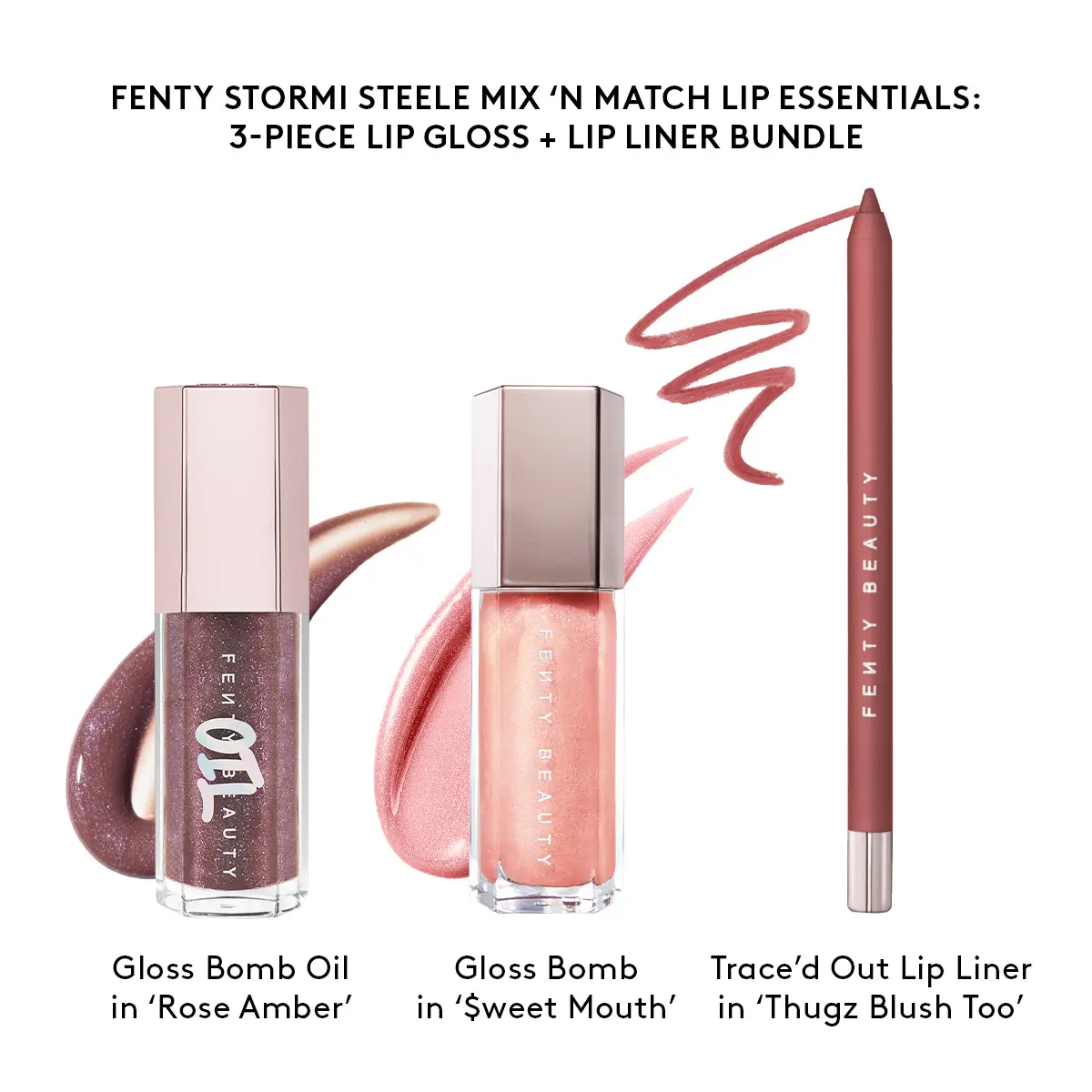 Fenty Beauty x Stormi Steele 3-piece lip bundle with glosses and liner. Mix, match, and create custom lip looks with Rihanna-approved formulas.