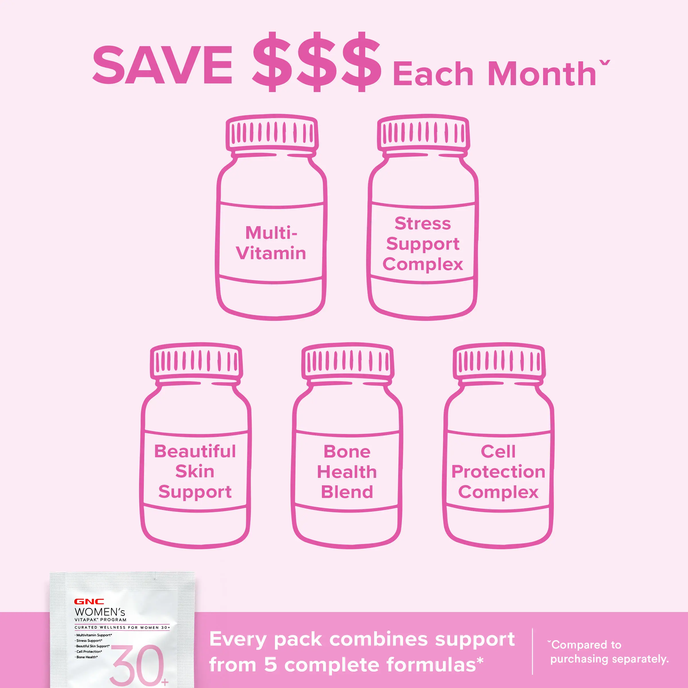 GNC Women’s 30+ Vitapak, Multivitamin for Daily Vitamin Needs, Stress & Bone Support, Skin Protection, 5-in-1 Formula