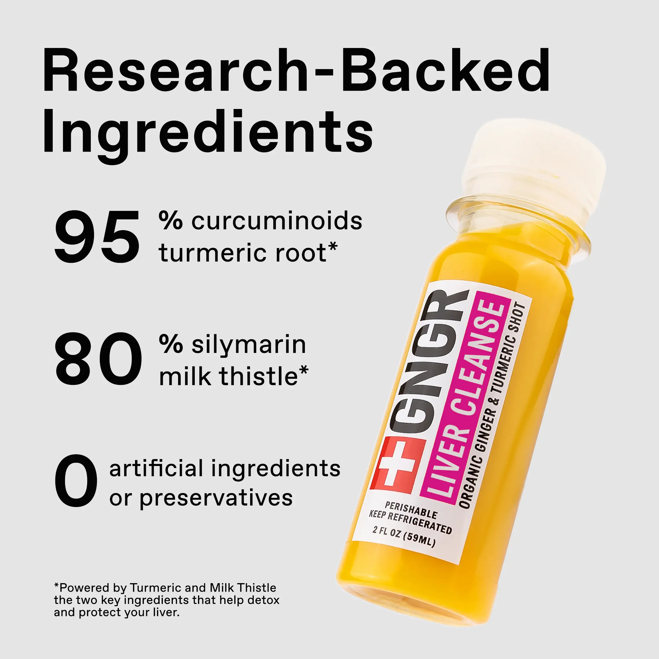 GNGR Liver Cleanse Shot | Organic Ginger Shot with Milk Thistle, Turmeric (95% Curcumin), Dandelion, Prebiotic Fiber
