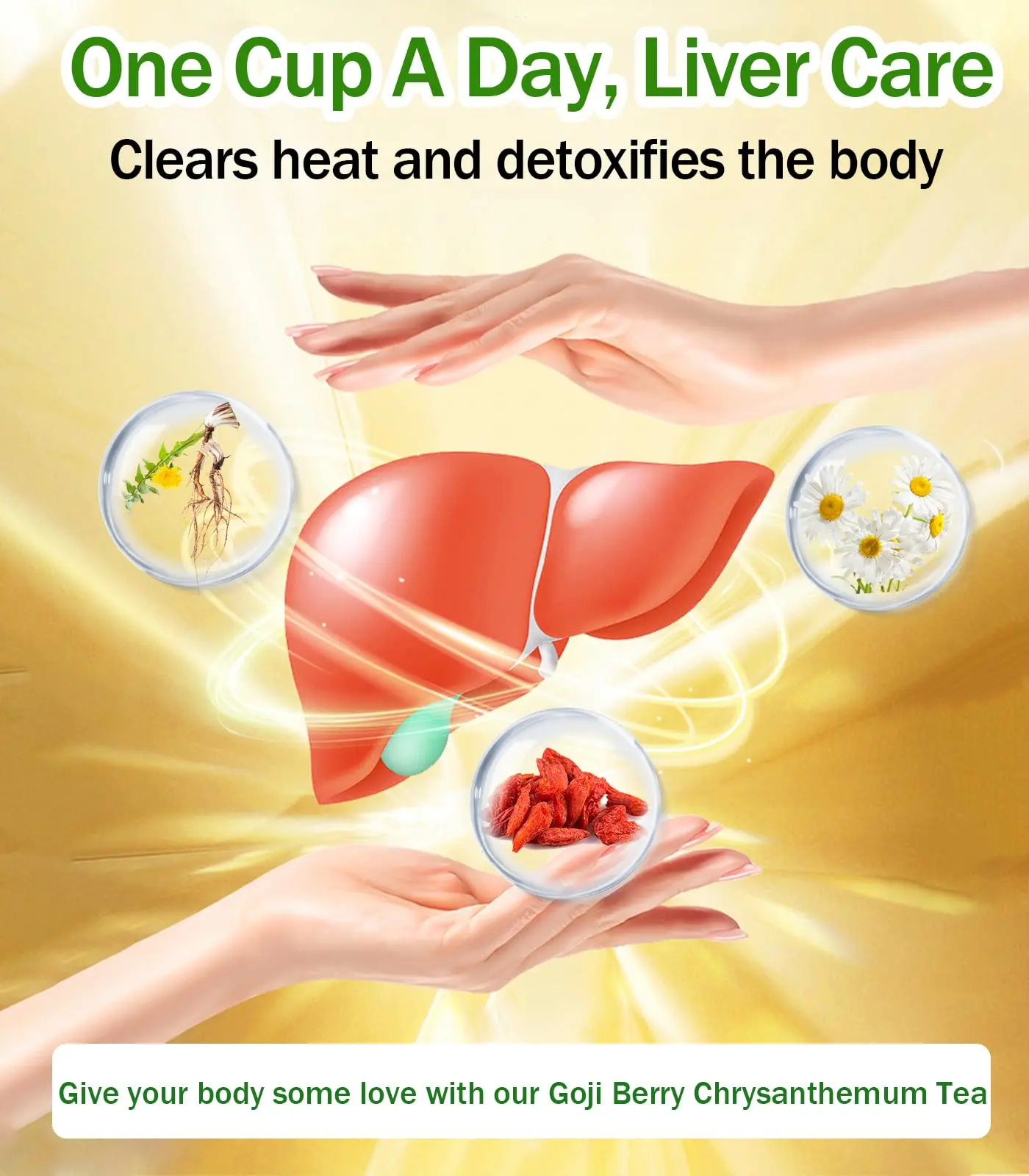 【Pure Natural Herbs】7 kinds of carefully selected herbs: Goji berries, chrysanthemum, dandelion, cassia seeds, orange peel, gardenia and licorice. Scientific proportioning, natural drying, without any additives, safe and natural.
