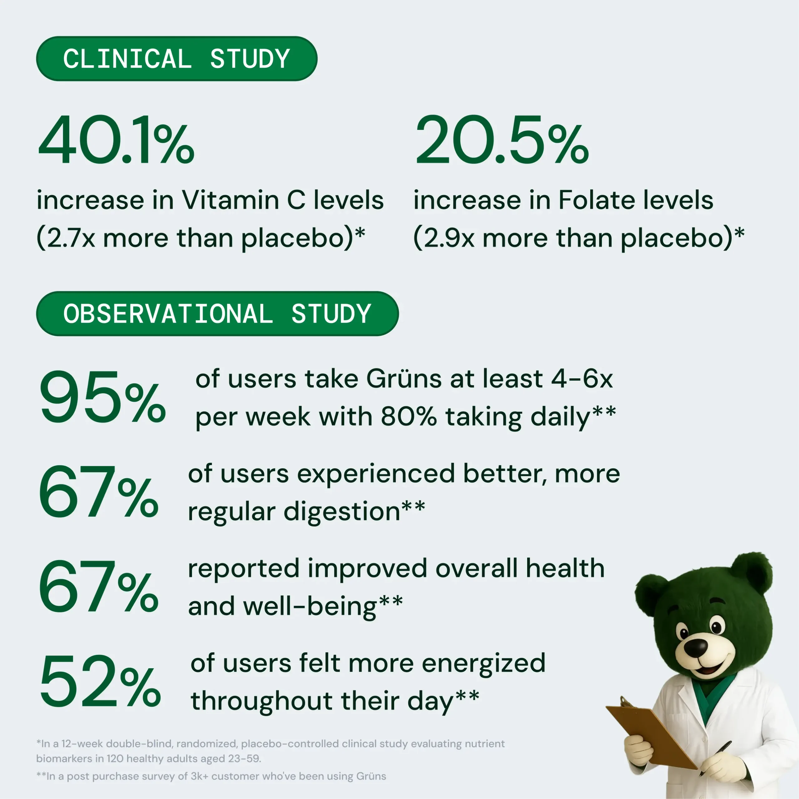 The ingredients in Grüns have been studied for hundreds of years. No bogus claims, just 35,000 research publications backing the efficacy of Grüns ingredients.