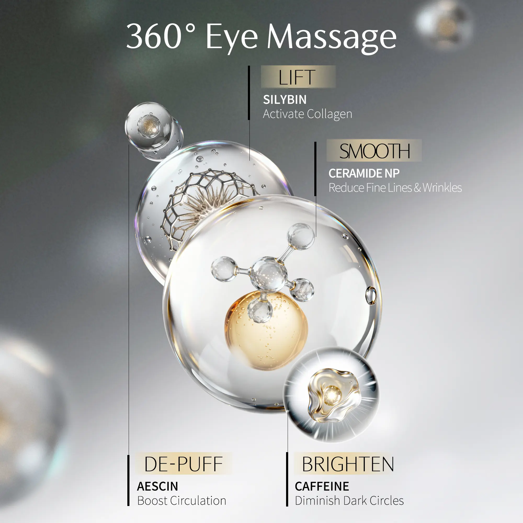 Designed for sensitive skin, the formula is free of 9 additives including alcohol, synthetic fragrance, parabens, and mineral oil. For deeper, 144% enhanced delivery, pair it with our ergonomically designed Cooling Massage Head. Its micro-current vibrating function (EMS) provides a 360° cooling massage, instantly de-puffing and helping to further activate collagen, reduce fine lines, and brighten the eye contour.