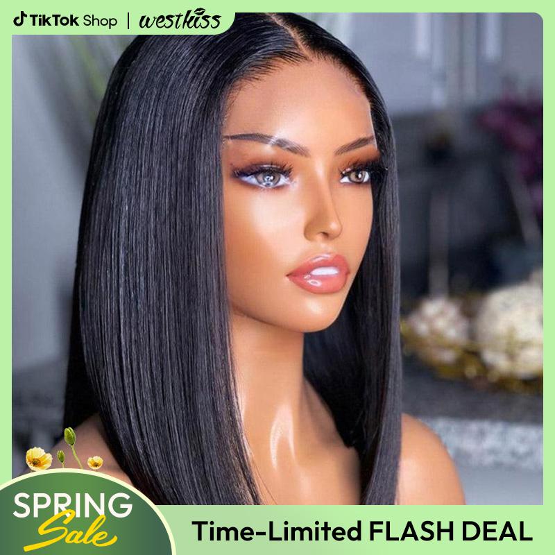 West Kiss Ready Go Pre Cut Glueless Bob Wig Straight Lace Front Human Hair Wig Pre Bleached Pre Plucked With Baby
