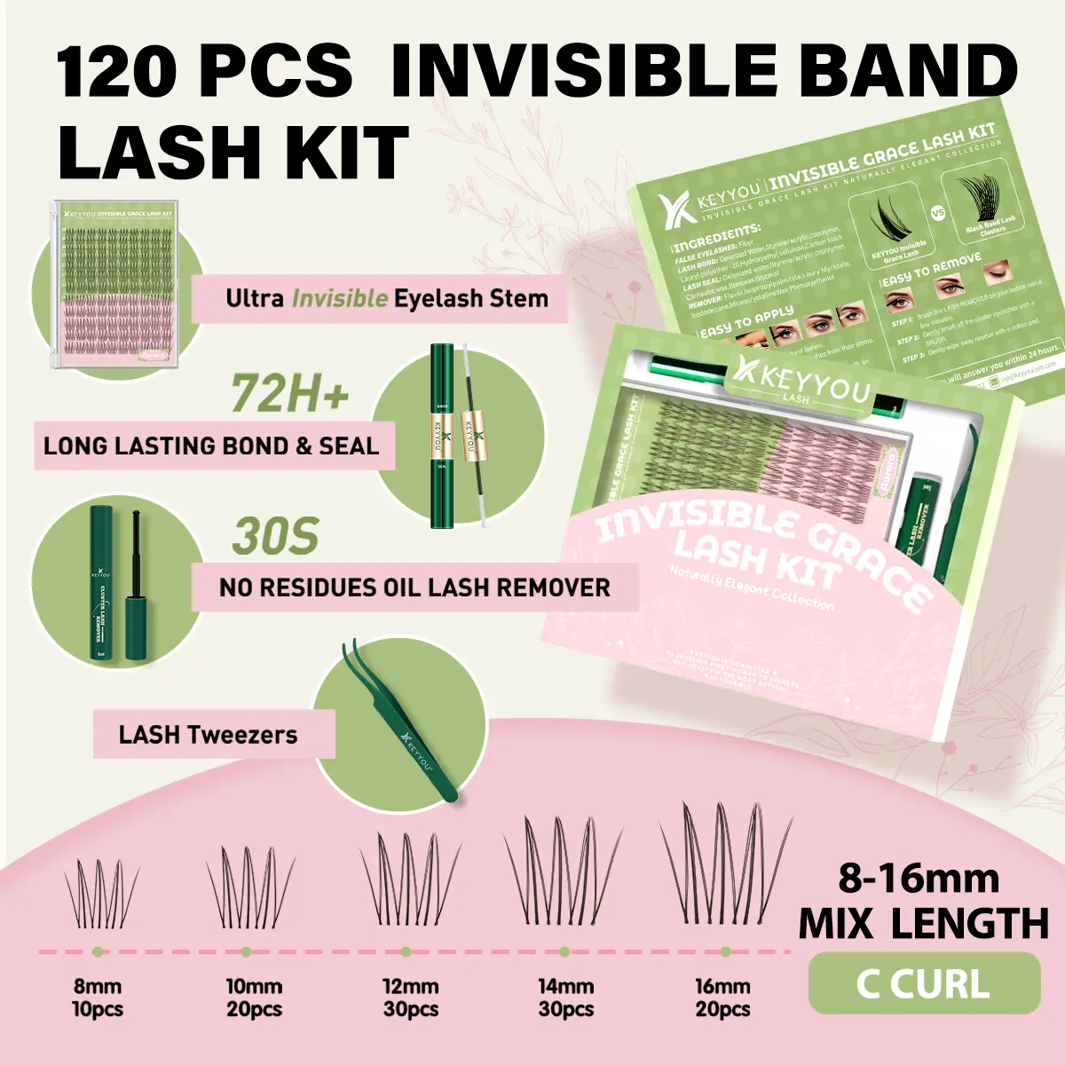 KEYYOU Aurora DIY Lashes Clusters With Invisible Band Waterproof Long-Lasting | Natural Daily, Festival Lash Extension
