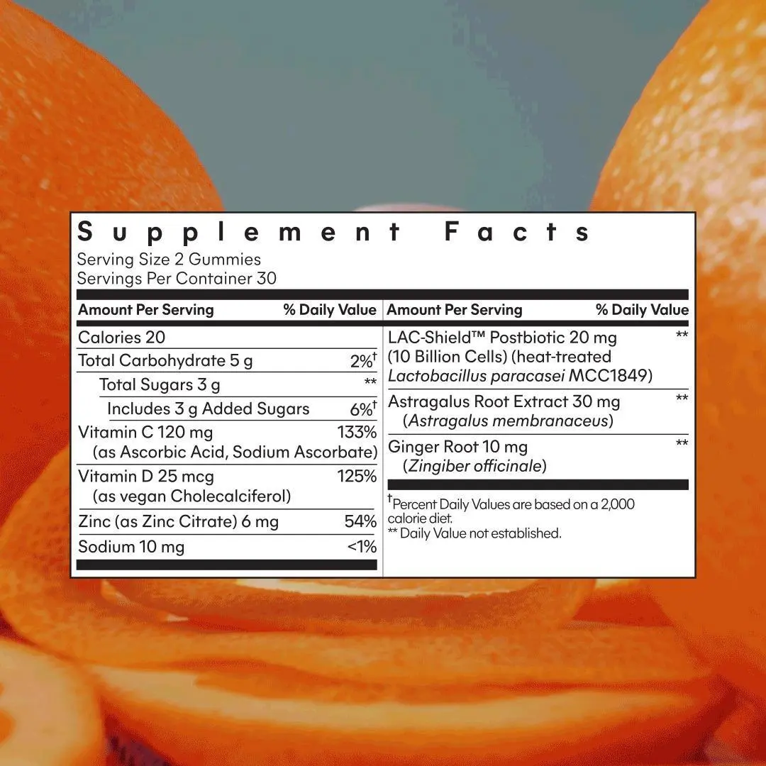 Vitamin C & D and Zinc support overall immune system health while a clinically-studied postbiotics strain has powerful immune-supporting properties.*30 servings/bottle