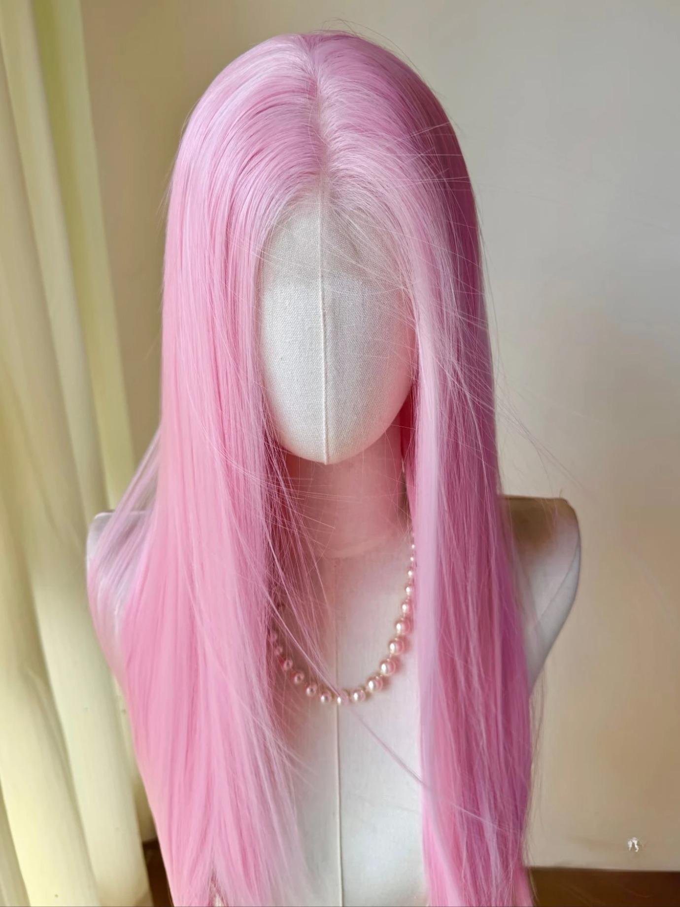 Light Pink Wig for Women 13×4 Lace Front Wig 26inch Long Straight Synthetic Wigs Soft Natural Heat-resistant Fiber $55.89