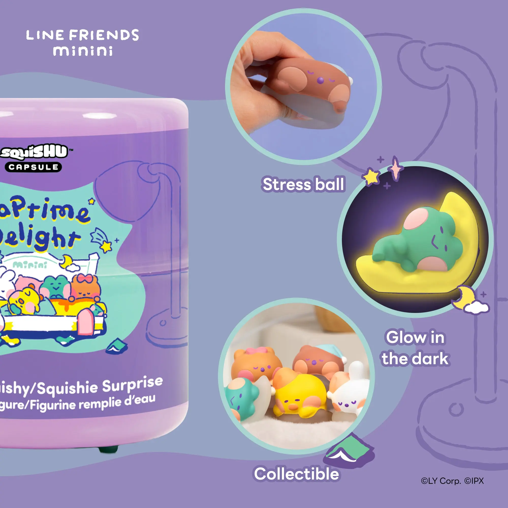 • COLLECTIBLE – Each LINE FRIENDS minini Mystery Squishy capsule contains one of 5 adorable mini squishies in a new, stackable capsule that’s perfect for displaying – collect them all!