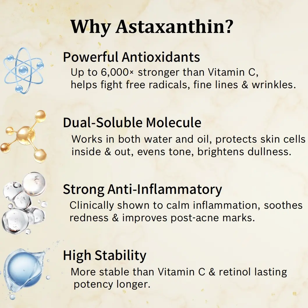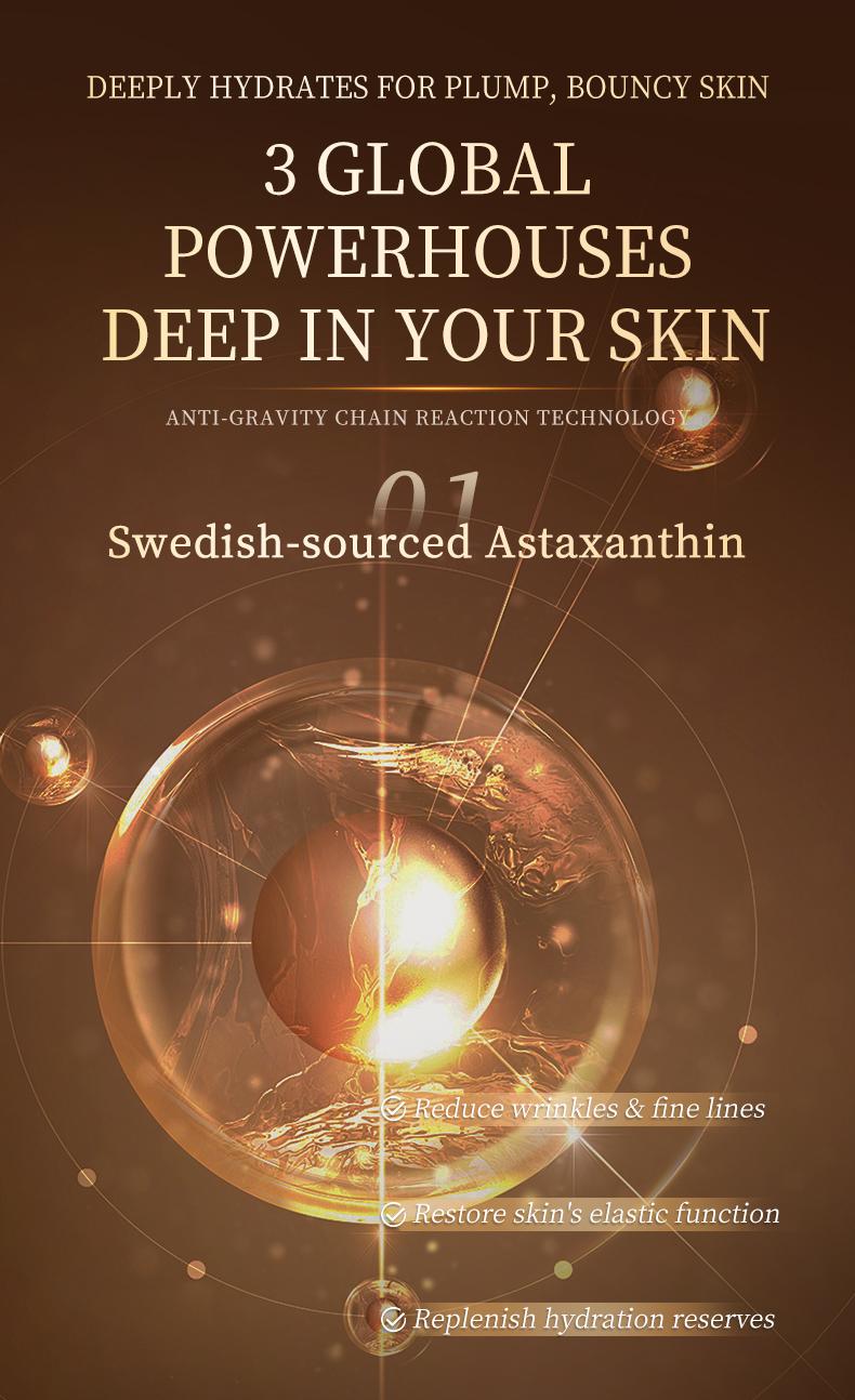 - Ingredients: Water (Aqua), Glycerin, 1,3-Propanediol, Hydroxypropyltrimonium Hyaluronate, Hydroxyacetophenone, 1,2-Hexanediol, Hydrolyzed, Hyaluronic Acid, Sodium Starch Octenylsuccinate, Butylene, Glycol, Decarboxy Carnosine HCI, Sodium Hyaluronate, Arginine, Haematococcus Pluvialis Oil (Astaxanthin), Fullerene, Xanthan Gum, Polyvinylpyrrolidone.