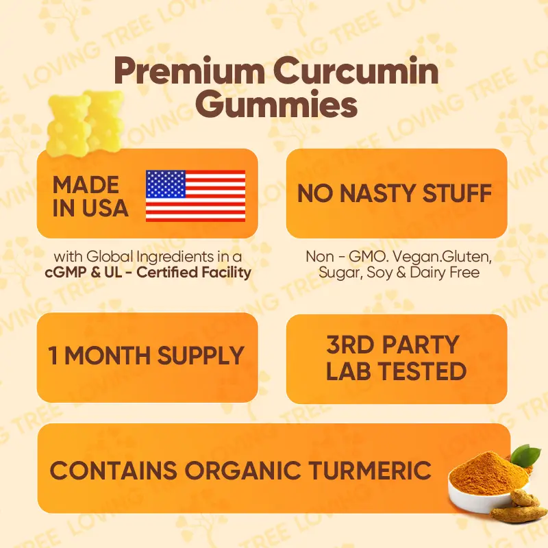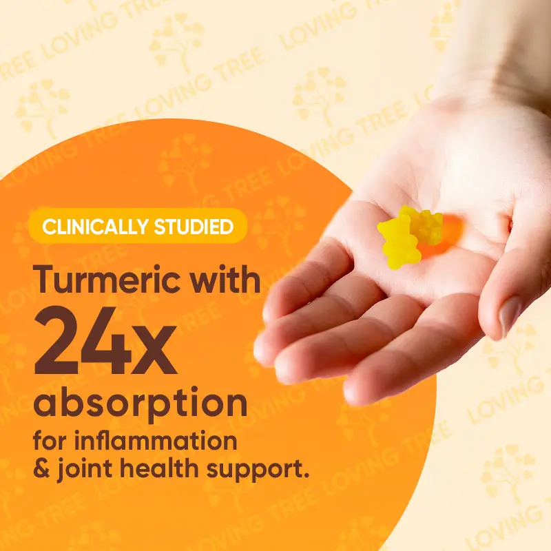 Loving Tree Turmeric Gummies are ideal for joint health. They feature 95% curcuminoids, black pepper, and pumpkin seed oil. This blend enhances curcumin absorption, supporting bone density and joint health naturally. Each gummy delivers key ingredients without extra features. Trust in the science of natural supplements for your health needs.