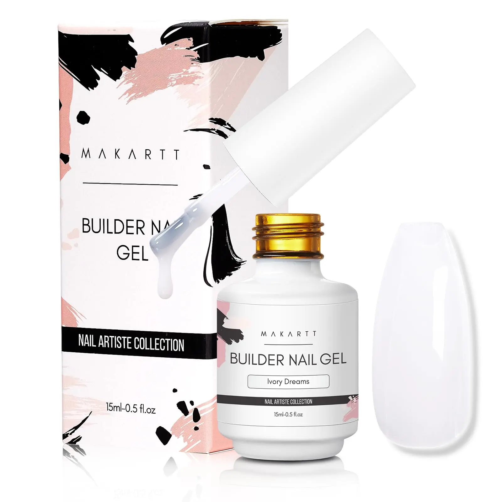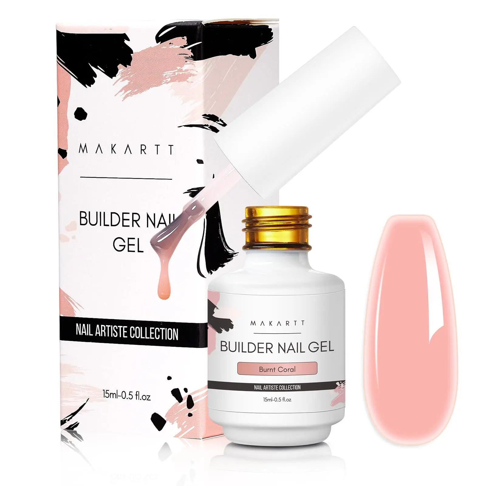 Makartt 7-in-1 builder nail gel. Repairs, strengthens, extends, and protects nails in one HEMA-free, self-leveling formula. Lighter than acrylic, cures in 60 seconds.