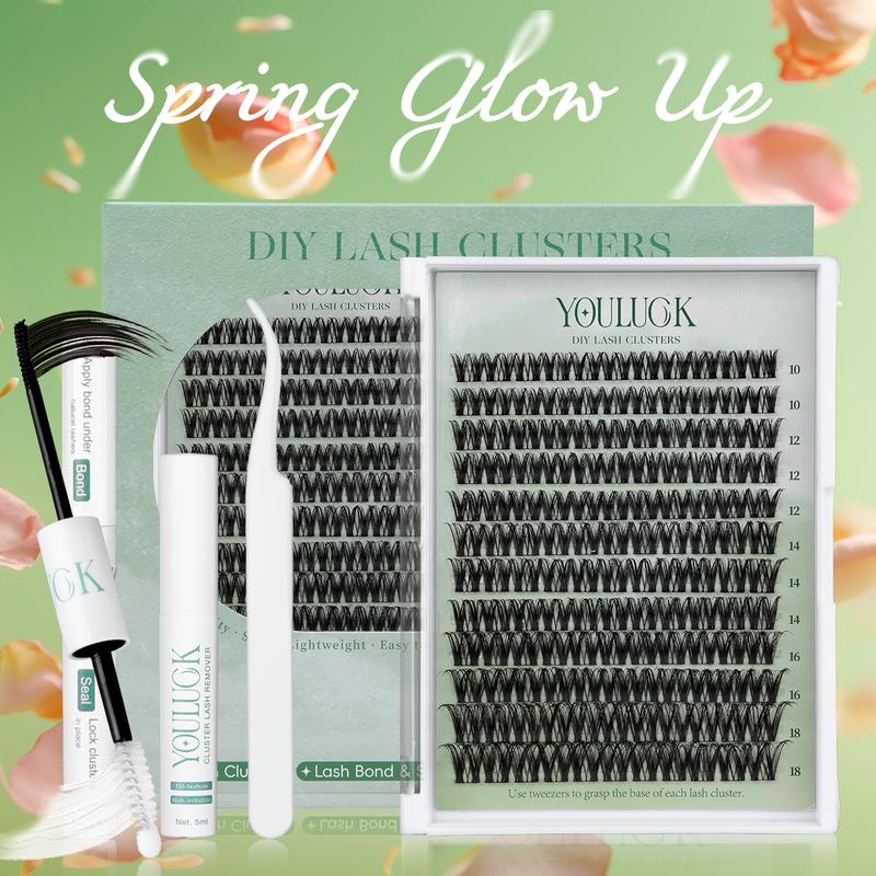 YOULUCK Velvet Touch Lash Clusters Waterproof Long-Lasting Individual Eyelash Extensions with Ultra-Thin Band Bond &