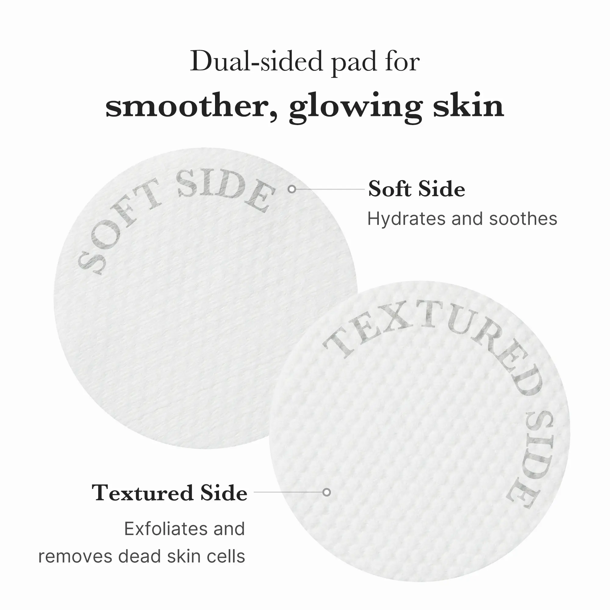 Dual textured facial pads infused with deeply hydrating and nourishing ingredients,