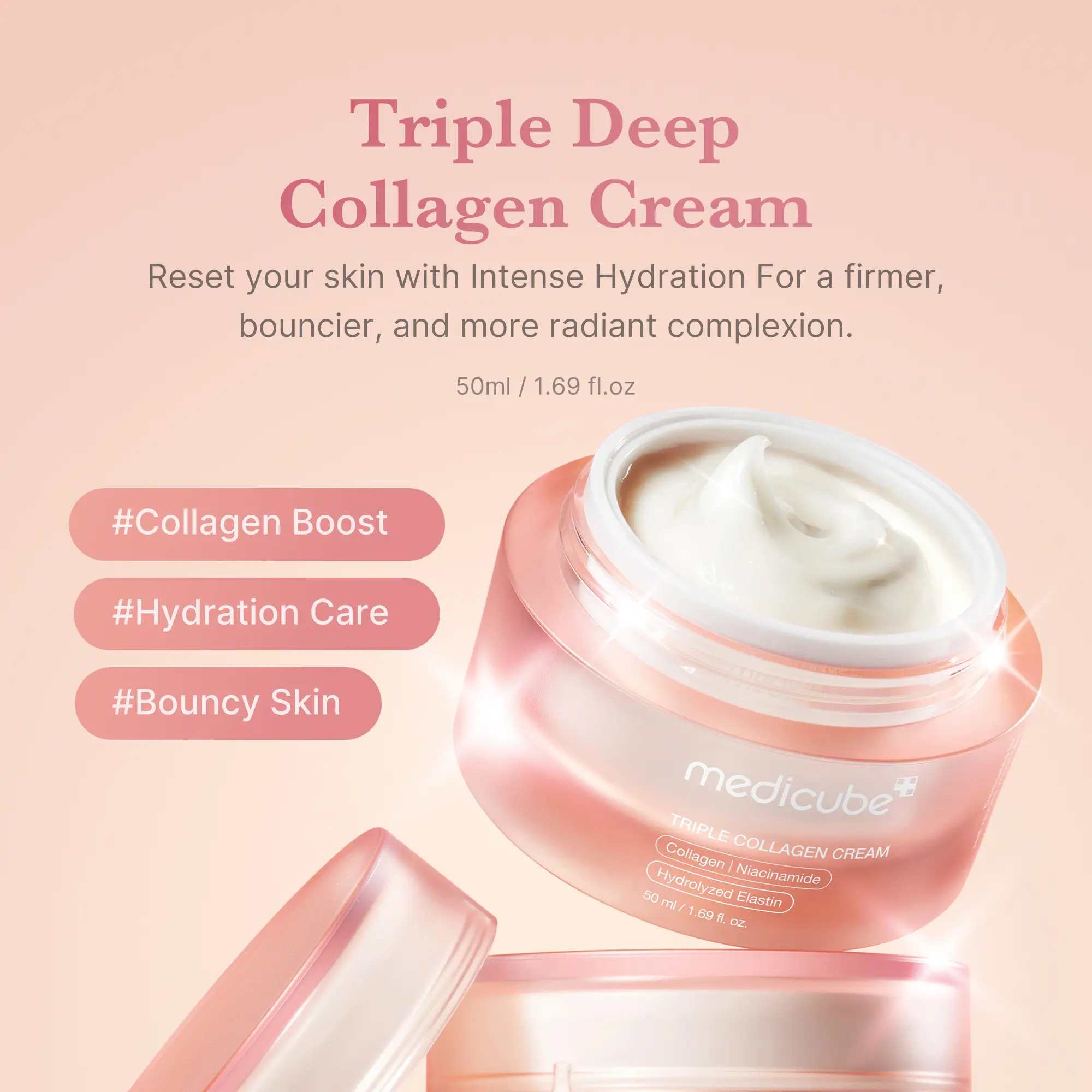 Medicube Triple Collagen Cream (Collagen+Hyaluronic Acid+Niacinamide+Shea Butter) l Hydrating Moisturizer