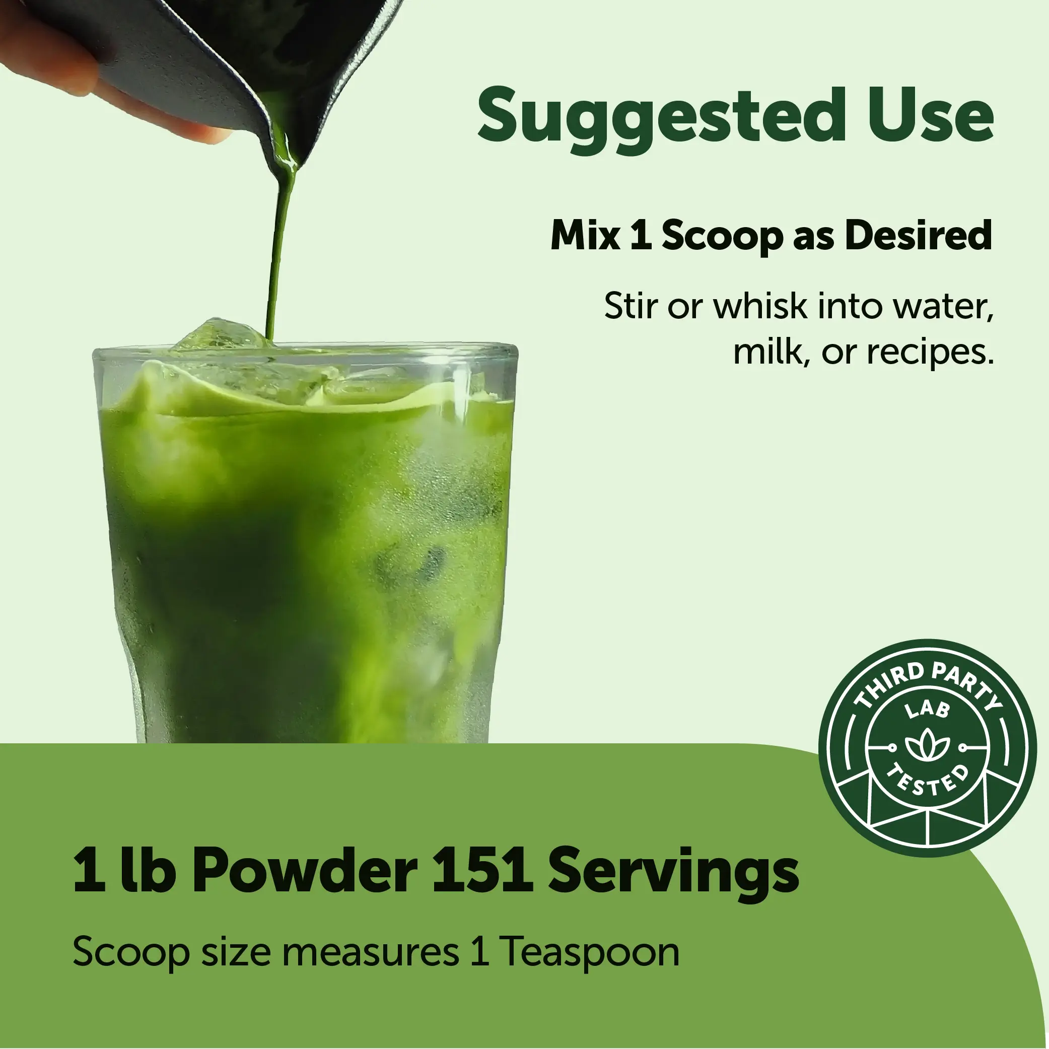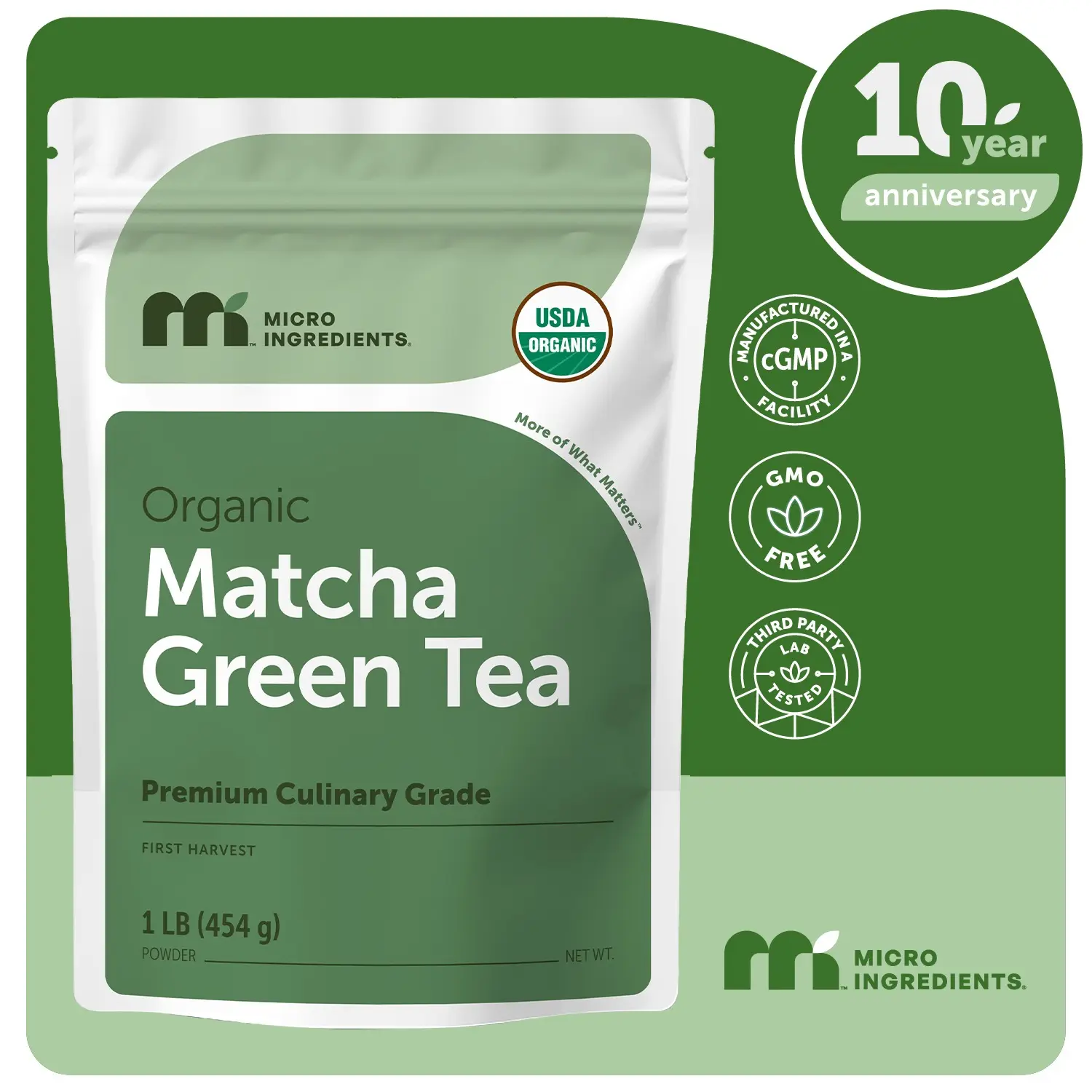 Micro Ingredients USDA Certified Organic Matcha Green Tea Powder delivers first-harvest Japanese quality in a 1-pound bag. Rich in EGCG antioxidants, L-Theanine, and 70mg of natural caffeine per serving for calm focus, vibrant energy, and whole-leaf wellness.
