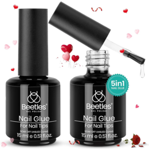 Beetles 5-in-1 UV Nail Glue & Base Gel Kit | Strong Hold Brush-On Gel for Press-On Nails, 15ml