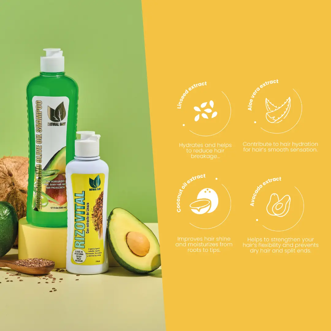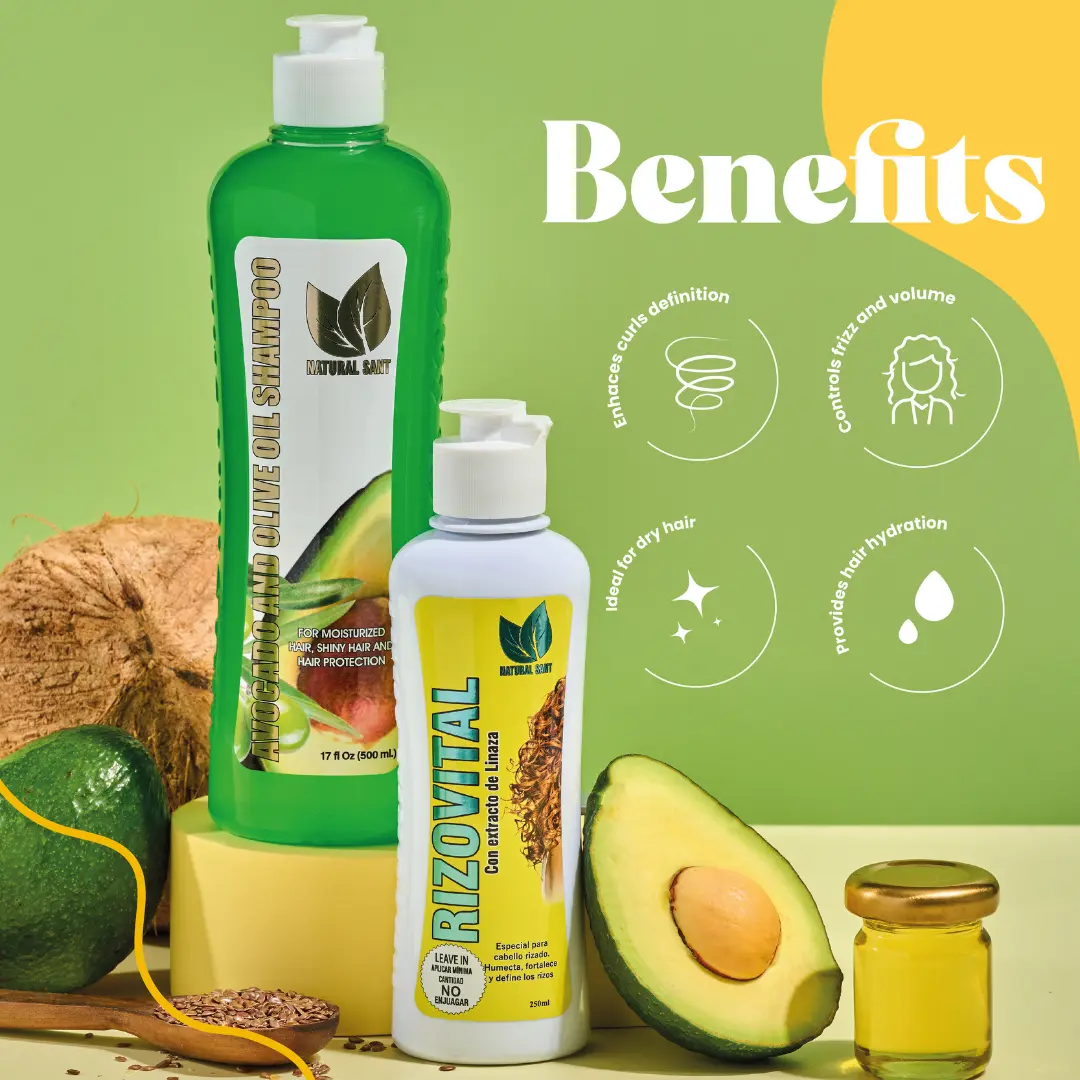 - Avocado shampoo: enriched with avocado oil and olive oil, is designed to combat dry and brittle hair while providing essential hydration and a smoothing effect.