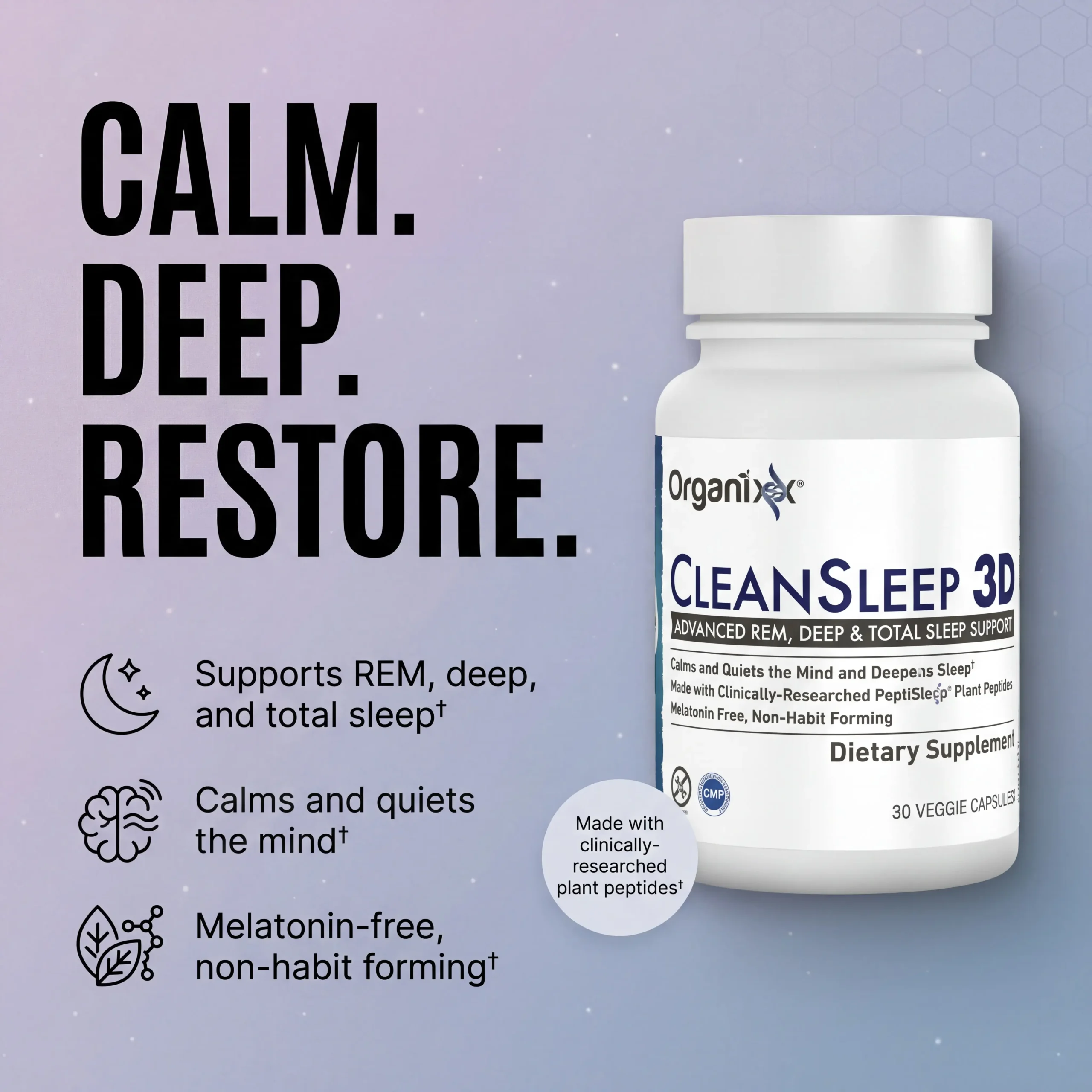 Organixx Clean Sleep 3D | 3-in-1 Melatonin-Free Sleep Complex to Support All Sleep Stages Without Next-Day Grogginess
