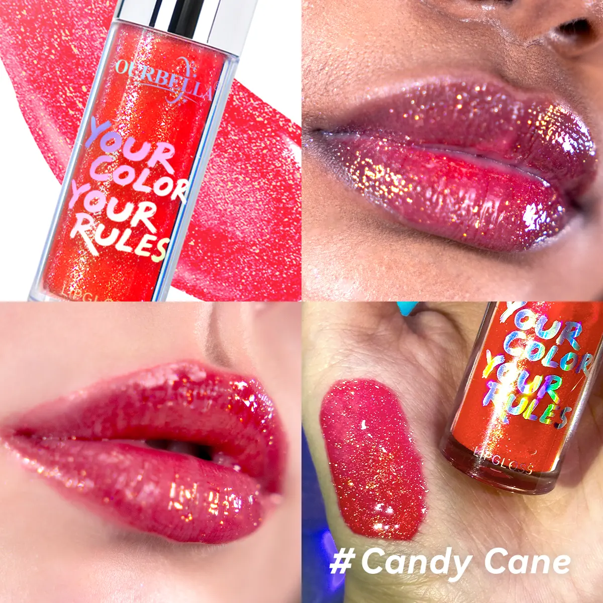 Candy Cane: Sheer cherry red with golden shimmers.