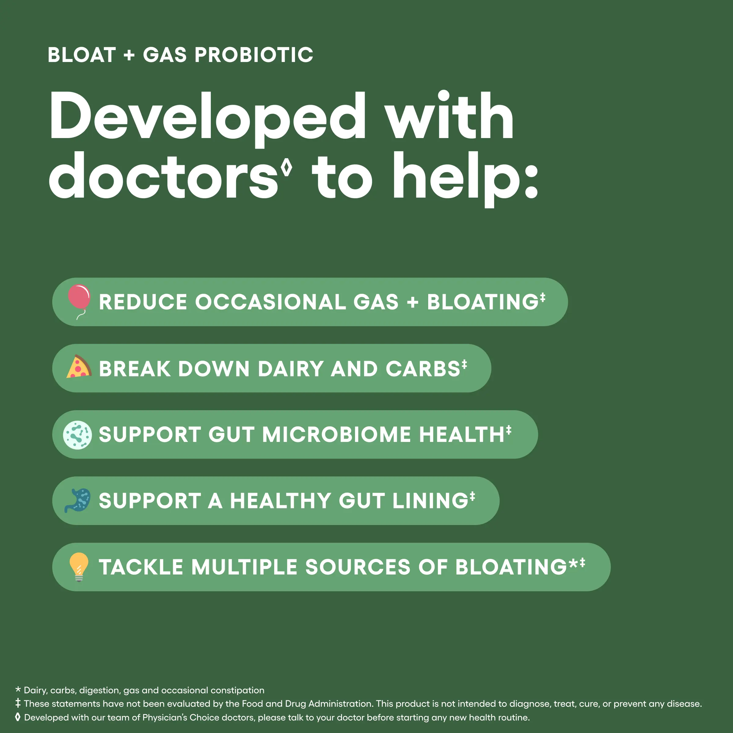 💨 Bloat & Gas Probiotic – Pre, pro & postbiotics work with enzymes to target bloating and support digestive discomfort