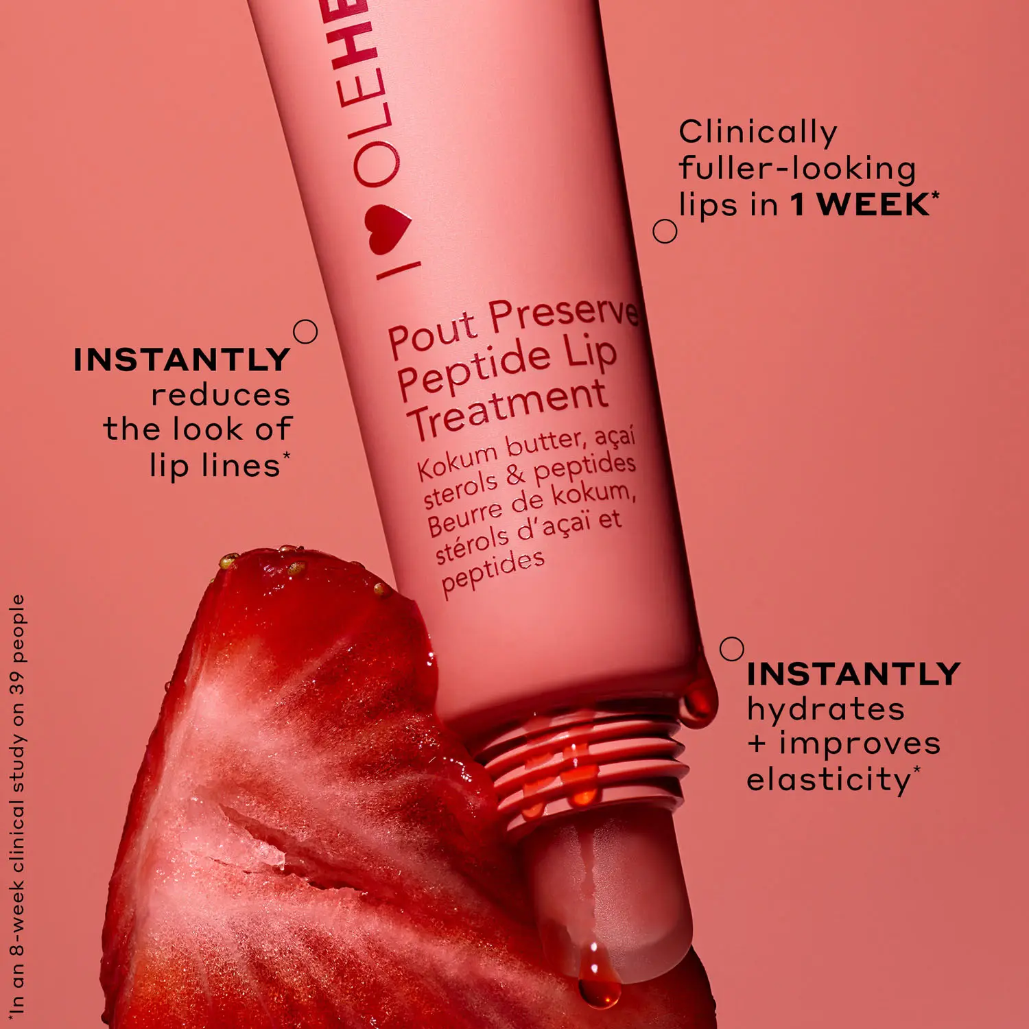 Highly-targeted, lip-specific peptides support lip’s natural shape and encourage a fuller appearance, while kokum butter, mango seed butter and cloudberry oil help plump lips with hydration. The result? Softer, bouncier younger-looking lips.
