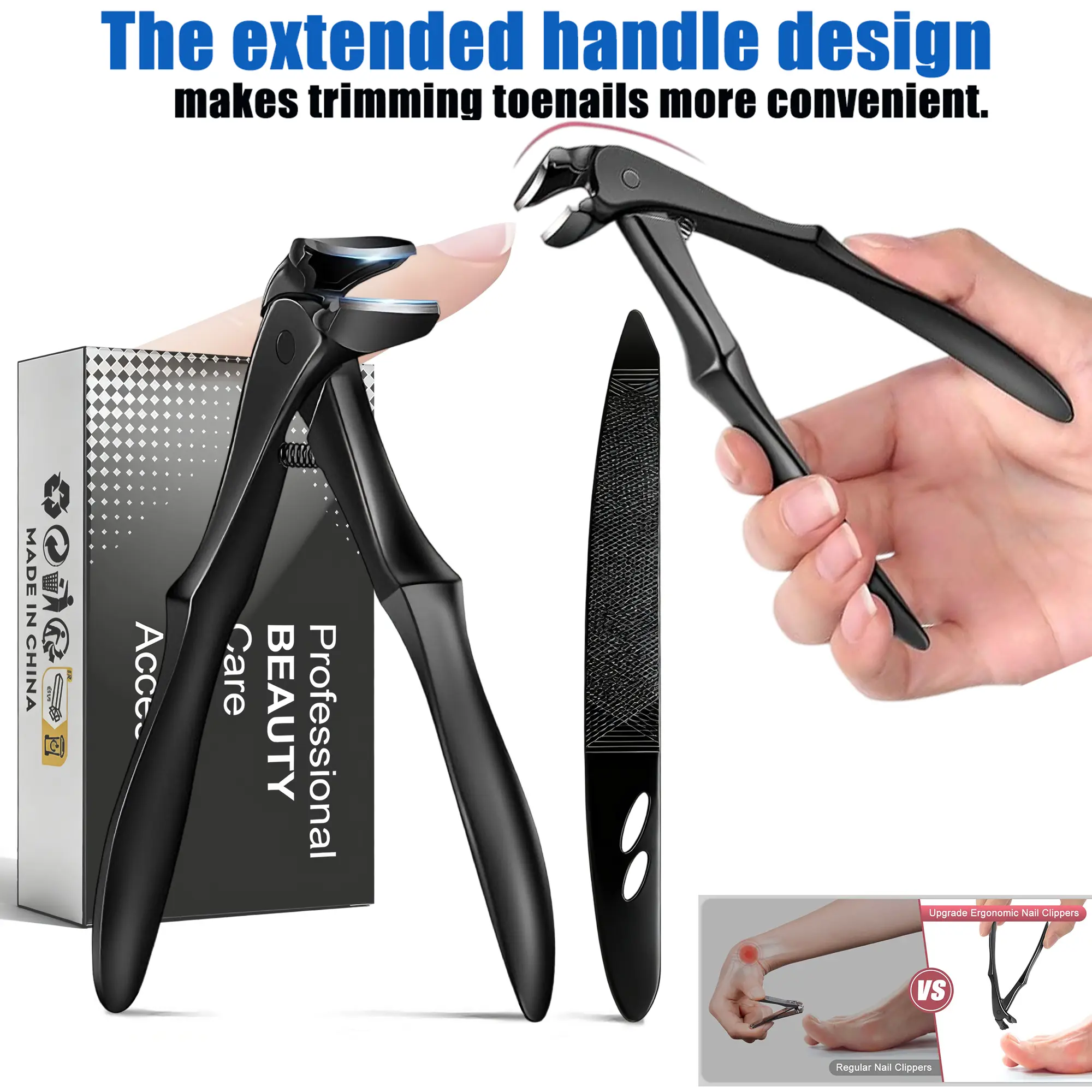 🌟 Professional Black Long-Handled Scimitar Head Toenail Scissors 🌟