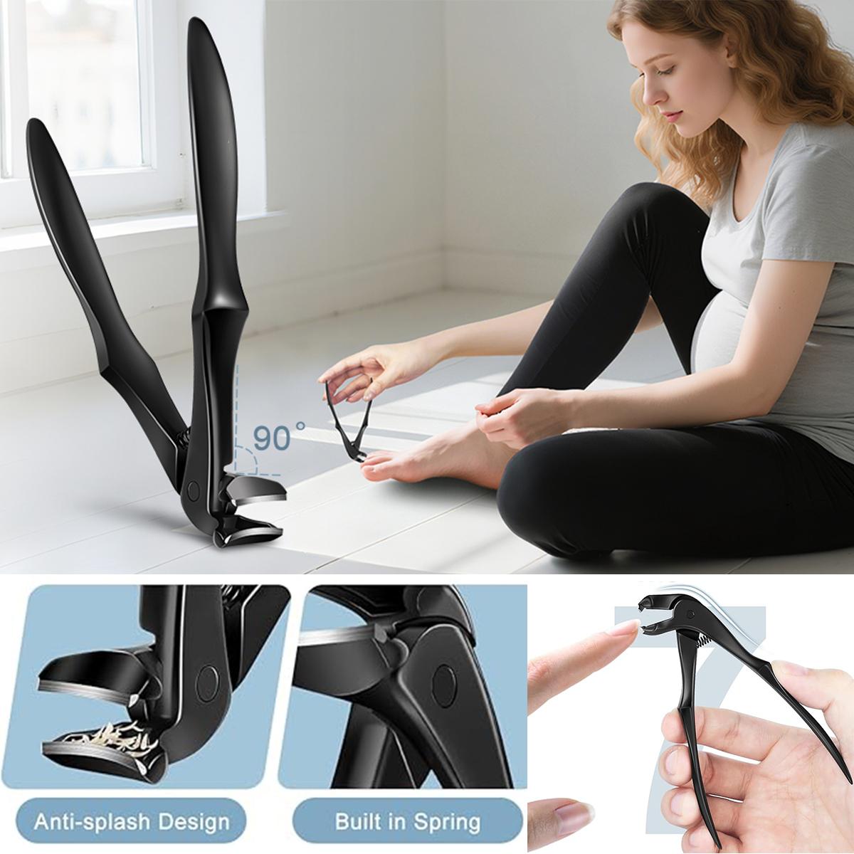 Professional black long-handled scimitar head toenail scissors, unisex more suitable for the elderly, large opening