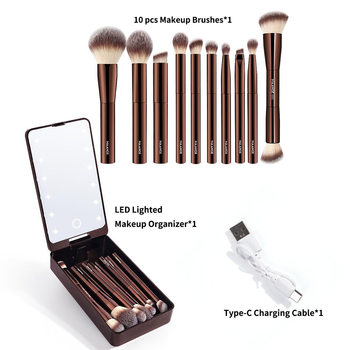 【LED Light Box】: The set includes a unique storage box equipped with LED lights, providing excellent visibility for makeup application, even in low-light conditions.