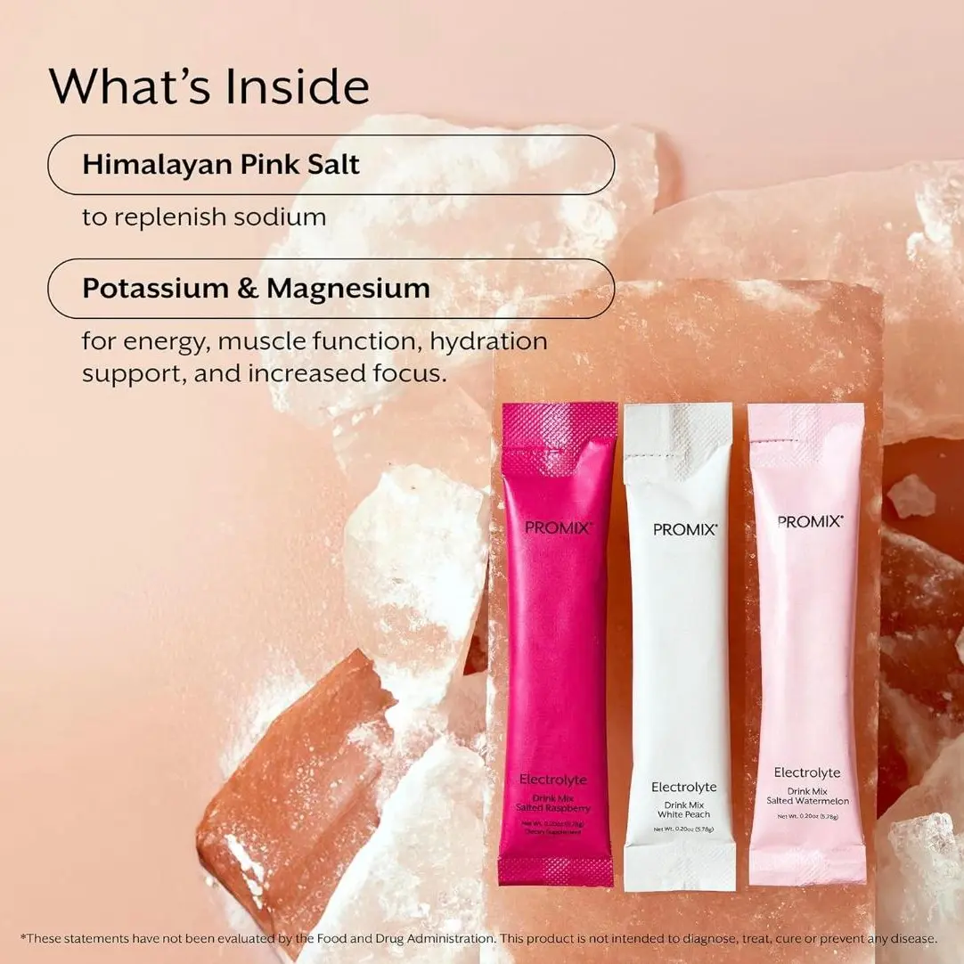 • 12 Count of Promix Electrolyte Drink Mix Variety Pack.