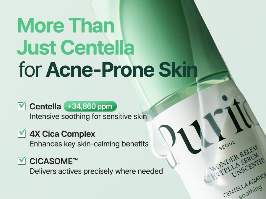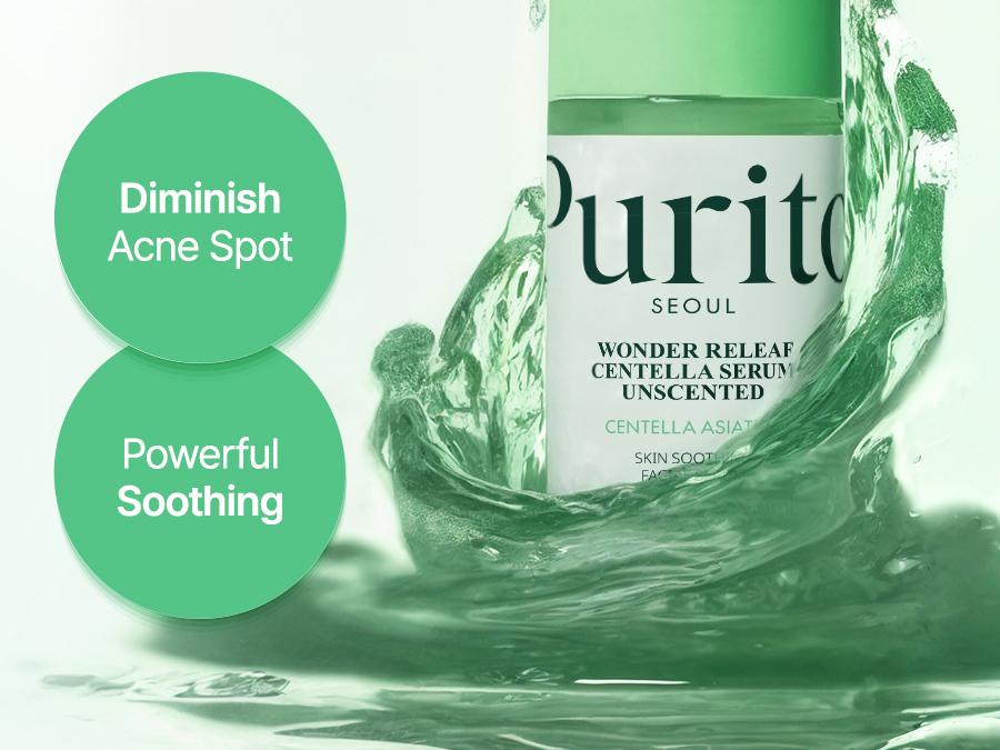 Purito Official Wonder Releaf Centella Serum Unscented I Vegan Cruelty Free Skin Repair Vitamin C Glow Serum Acne Cica