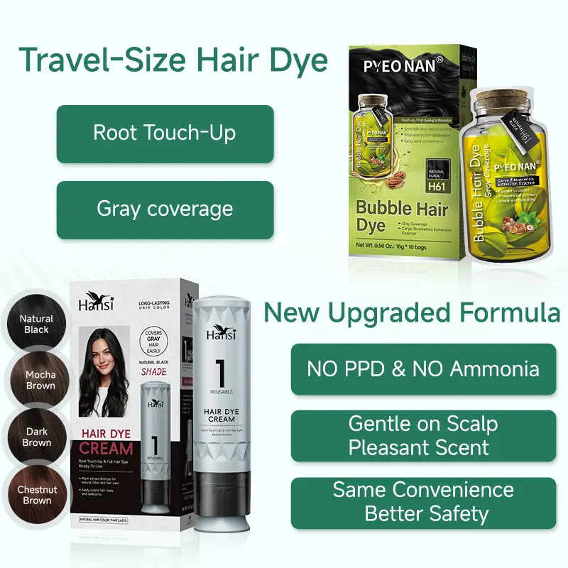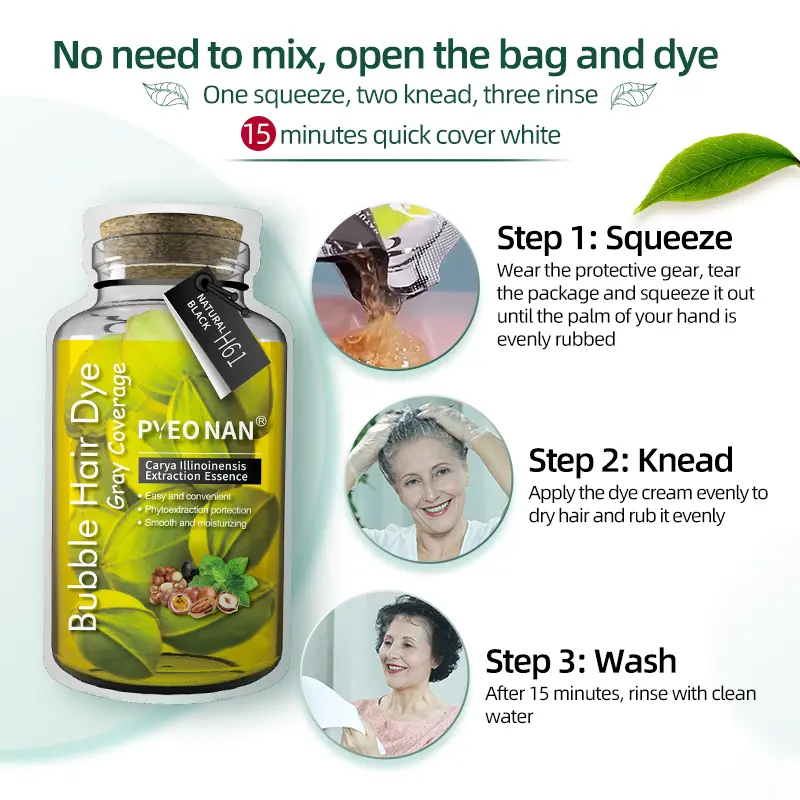 PYEONAN Unisex Bubble Hair Dye with Natural Plant Extracts, 2-in-1 for Gray Coverage & Hair Care, Gray Hair Turns