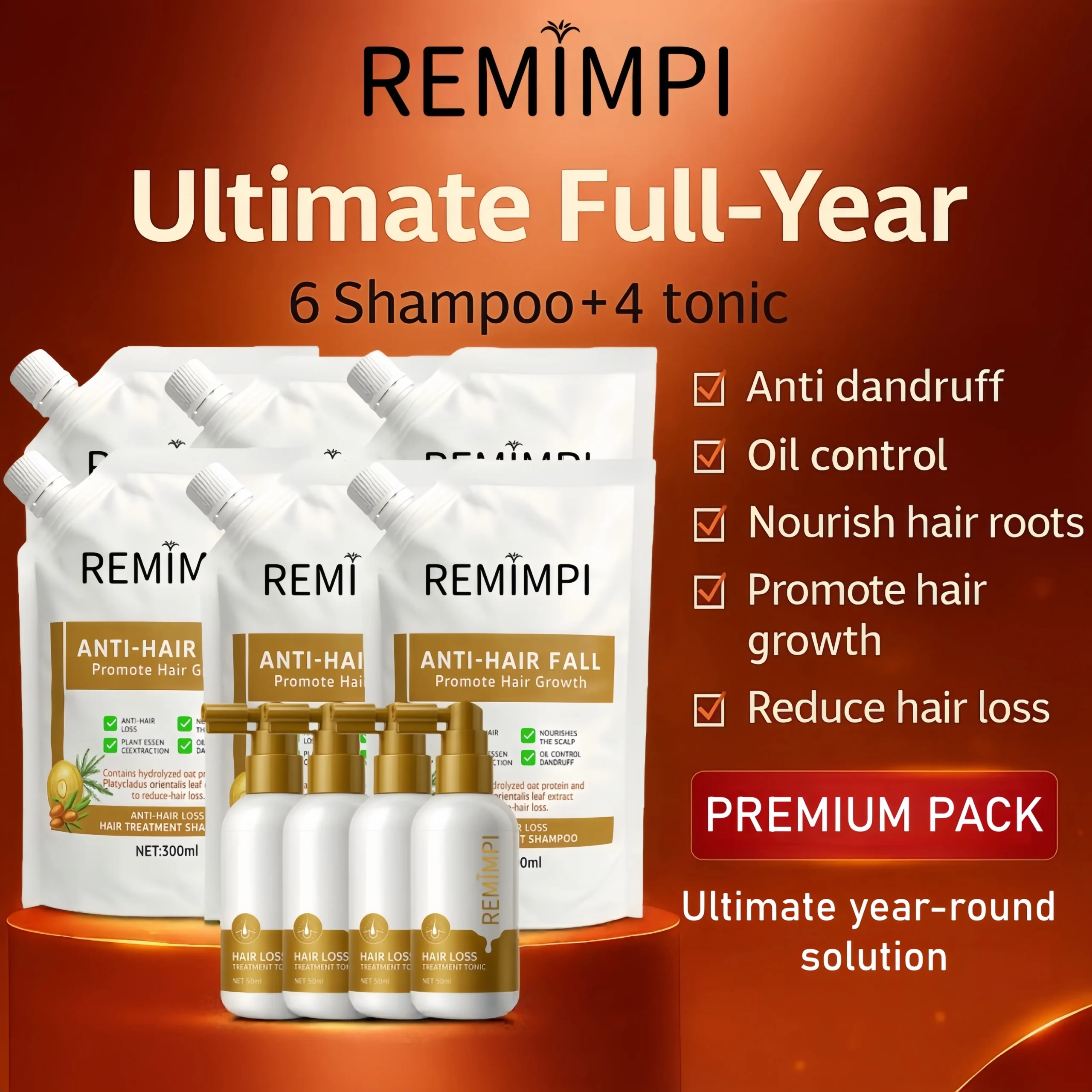 REMIMPI Ultimate Care System – 6 Anti-Hair Fall Shampoos + 4 Hair Growth Tonics | 12-Month Complete Hair Regeneration
