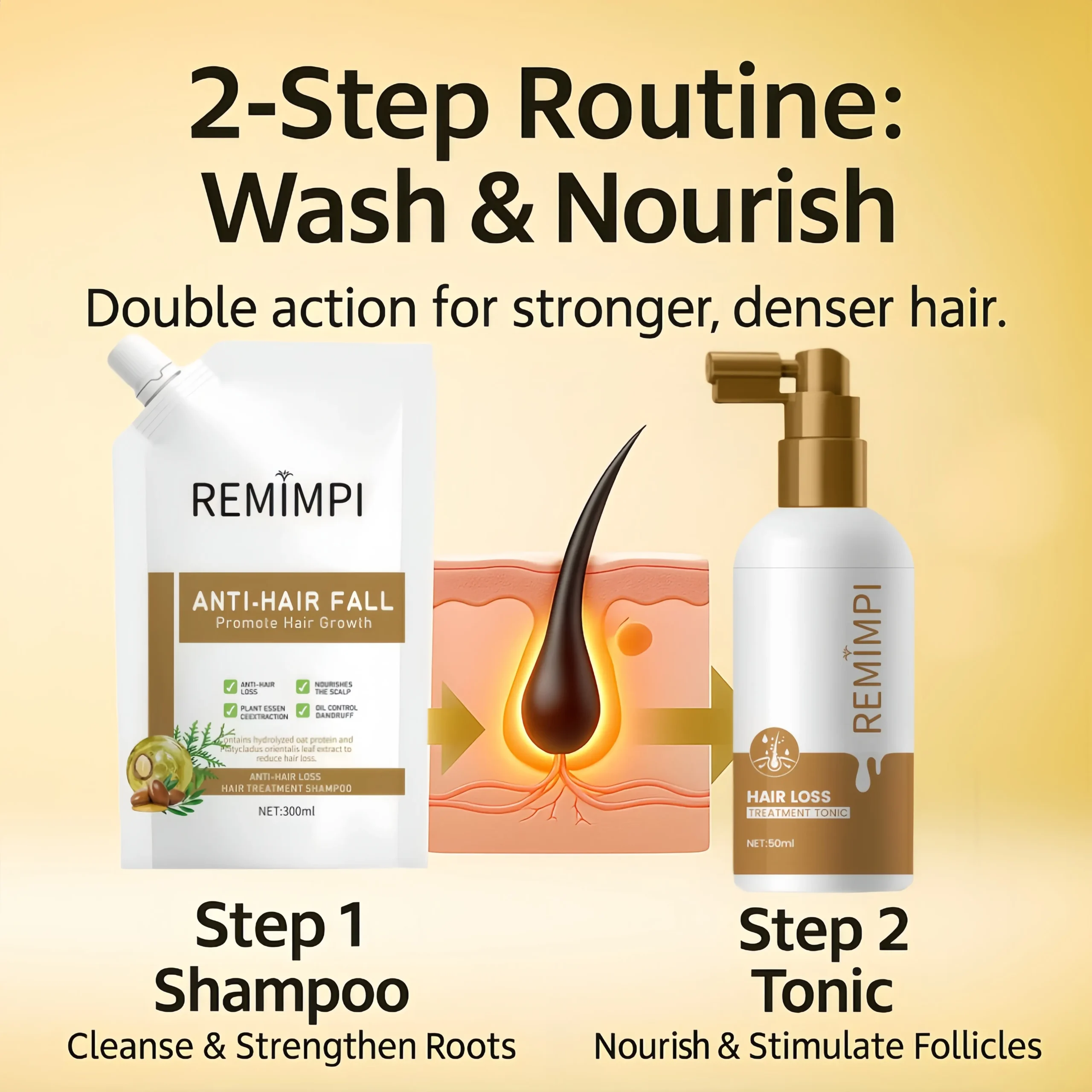 2. Comprehensive 2-Step System – Deep cleanse, nourish, and repair for visibly thicker hair.