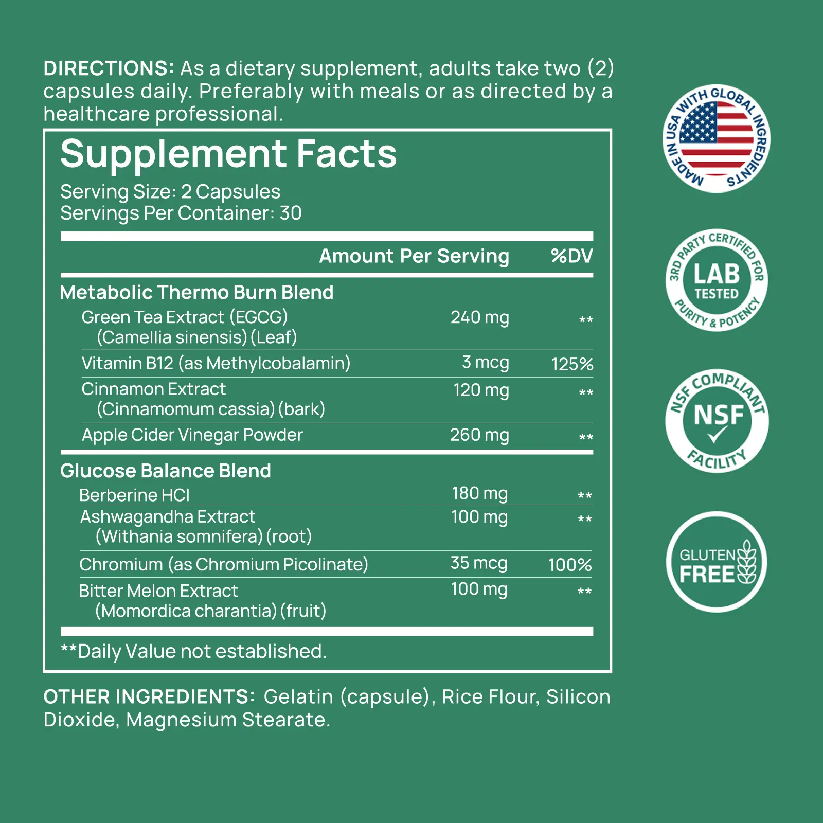 Clean, Transparent Formula: Each capsule is made without soy, dairy, gluten, or tree nuts, and manufactured in the USA under strict quality standards. All batches are third-party tested for purity and consistency.