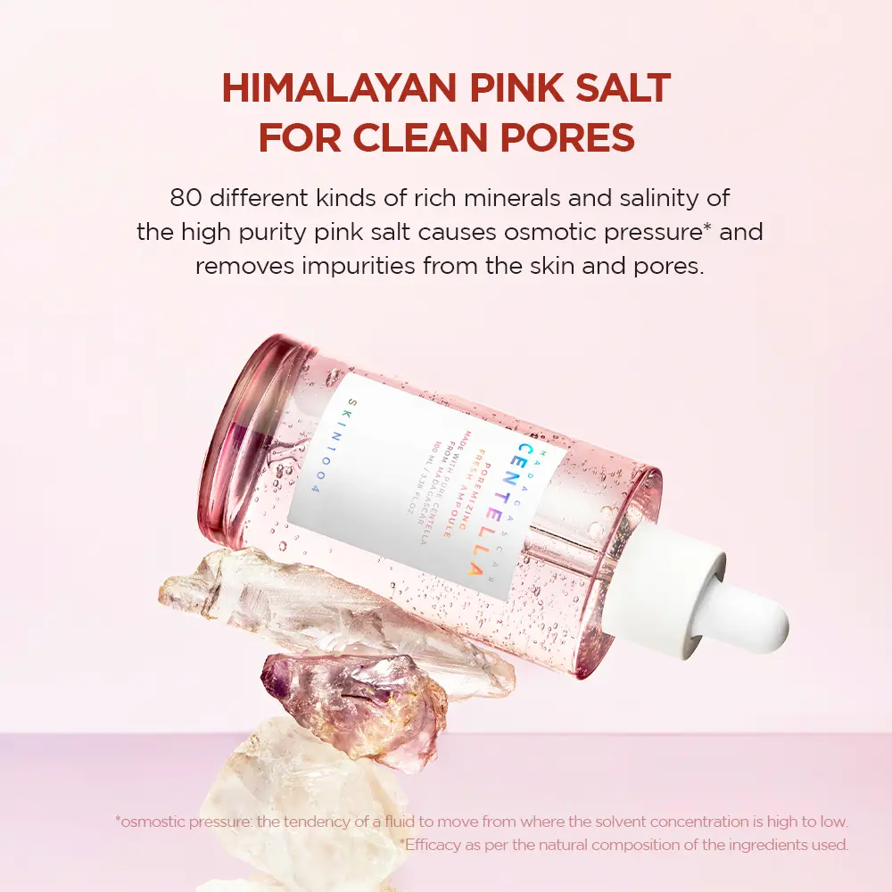 A pore-minimizing functional ampoule with Pink mineral salt and 9 Peptides cleanses pores and improves skin elasticity.