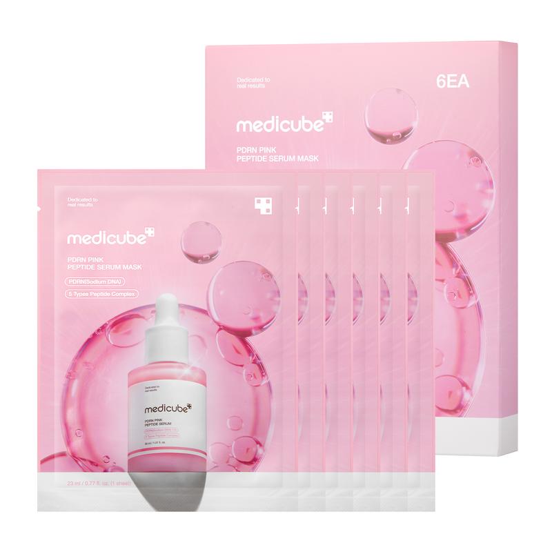 Medicube PDRN Pink Peptide Ampoule Mask 6EA | Signature Salmon PDRN Serum Infused Second-skin Fit Sheet, Uneven Skin