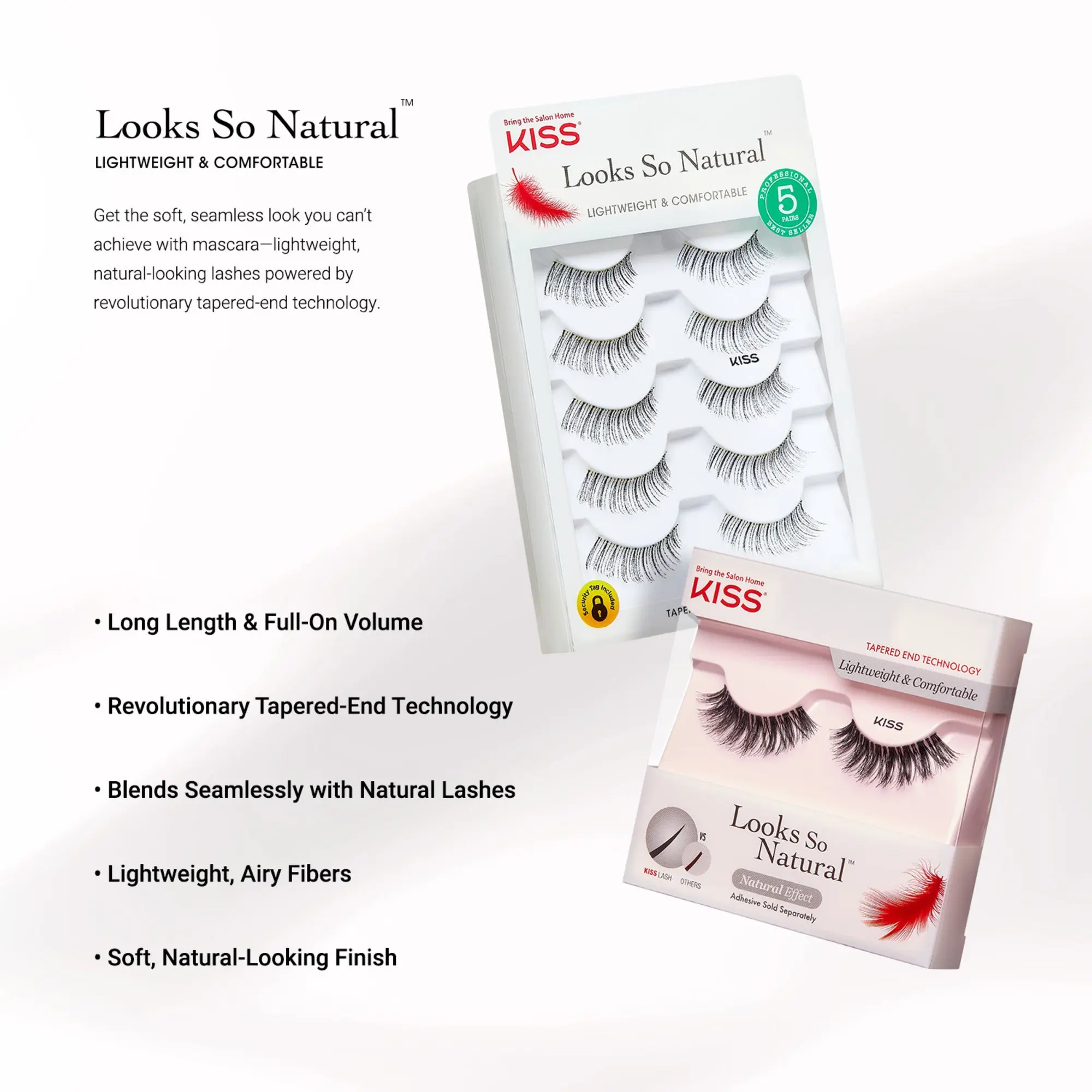 KISS So Wispy False Eyelashes are lightweight and voluminous, with softly curled ends in a crisscross pattern, and longer at the outer corners. High quality synthetic fibers blend with and look like your own lashes, only fuller & longer.