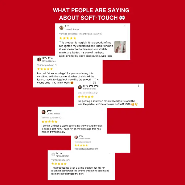 Step 1: first Soft-Touch exfoliates, smooths and softens skin. This powerful formula of chemical exfoliating acids removes dead skin, clears sebum build-up, and softens skin.