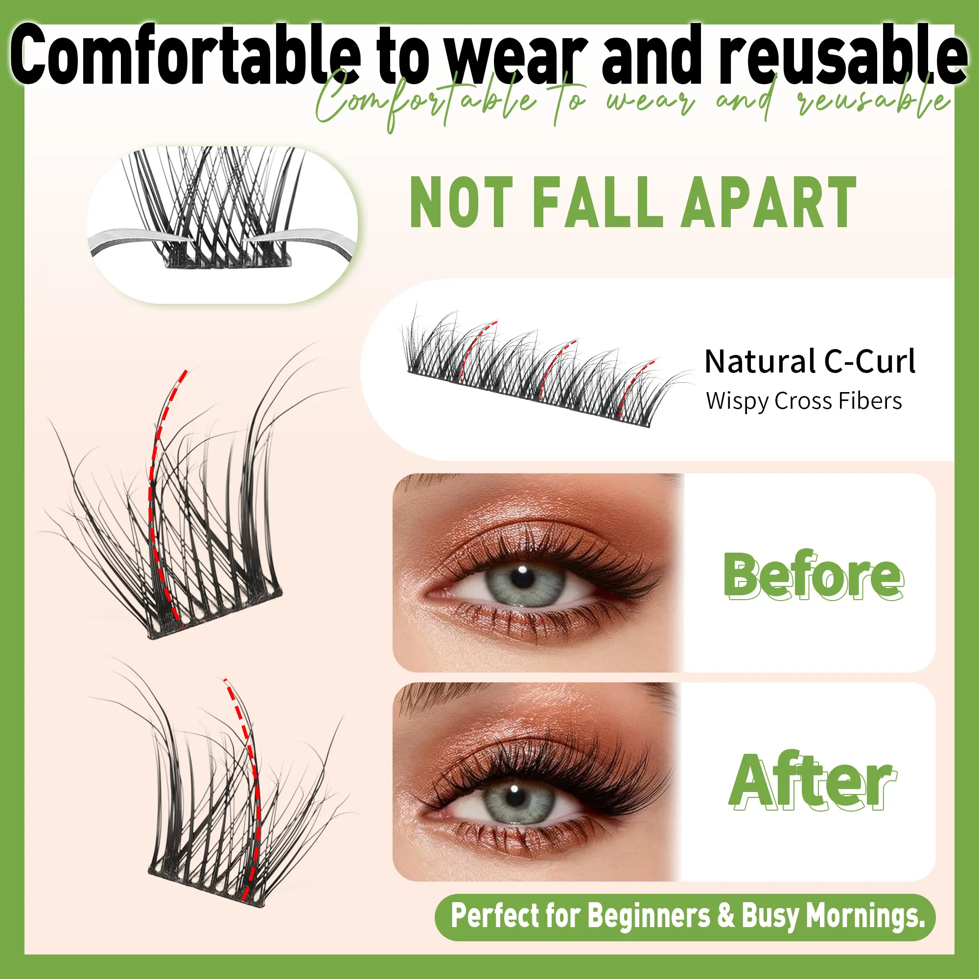【Fluffy Tail Design & 100° Precision Curl】Our signature innovation features a unique 100-degree angled curl at the lash tips. This creates a naturally fluffy, wispy, and slightly “undone” bedhead effect, offering superior volume and a stunning, eye-opening lift compared to flat-ended ordinary clusters.
